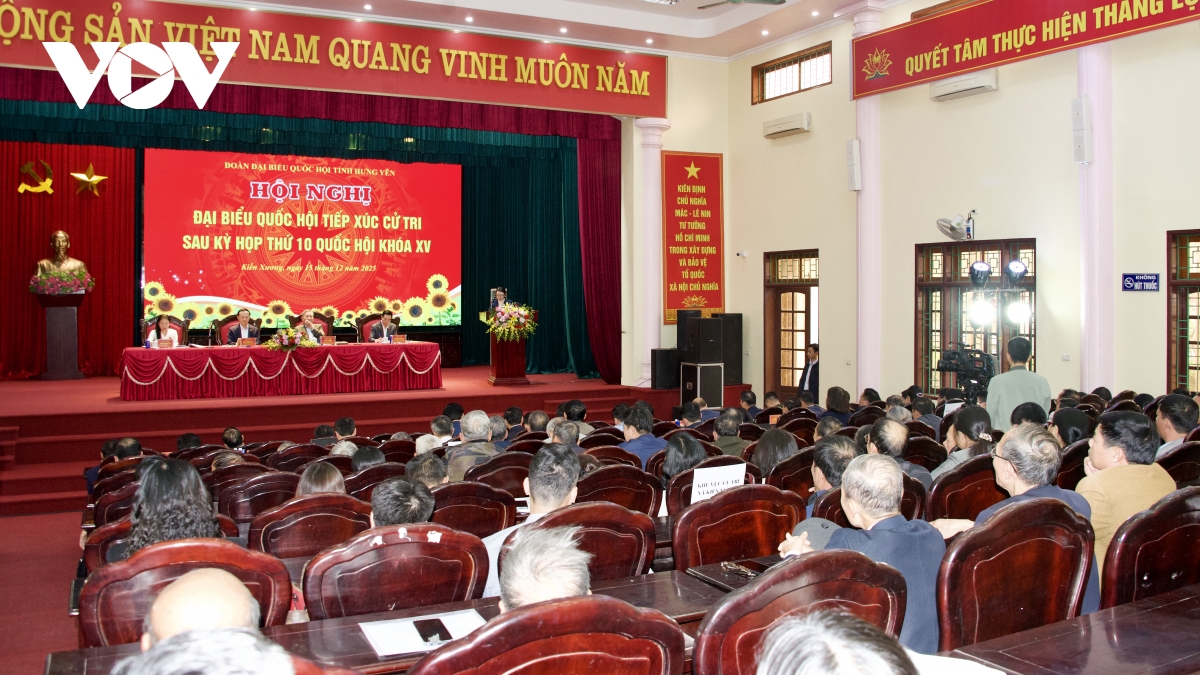 VOV.VN - Chiều 15/12, tại Hưng Yên, Tổng Bí thư Tô Lâm cùng các đại biểu Quốc hội tỉnh đã có buổi tiếp xúc cử tri tại các xã Kiến Xương, Lê Lợi và Quang Lịch nhằm thông báo những kết quả chính tại Kỳ họp 10 Quốc hội khoá XV và trả lời các ý kiến kiến nghị của cử tri địa phương.