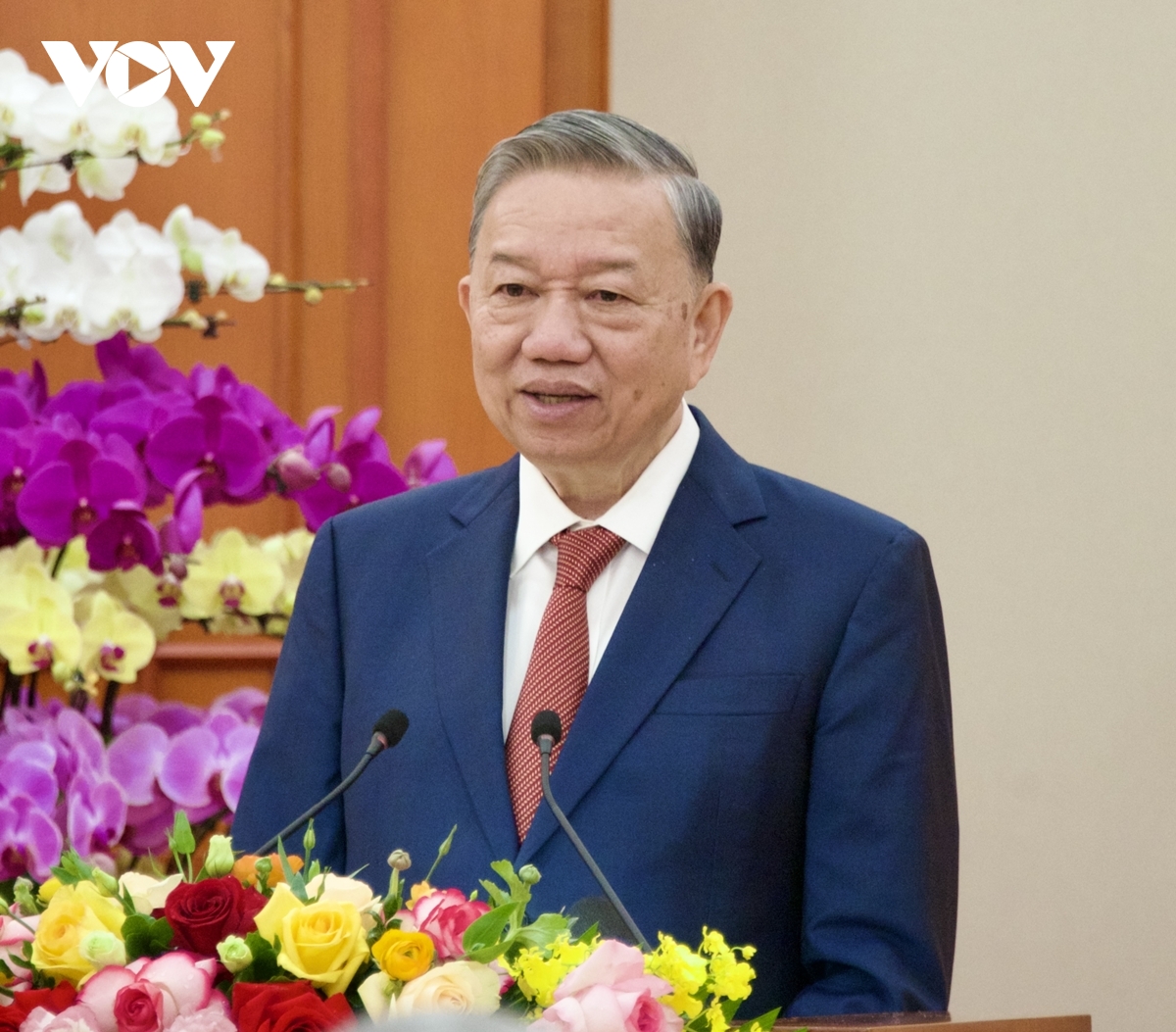"Thực hiện tốt công tác chính trị, tư tưởng trong tiếp nhận và sắp xếp cán bộ lãnh đạo các cơ quan lãnh đạo các đơn vị trực thuộc trong sắp xếp trụ sở, chỗ làm việc, không để xảy ra tình trạng phân biệt mất đoàn kết, bảo đảm đời sống vật chất, tinh thần cho cán bộ, công chức, viên chức, người lao động đón Tết Nguyên đán Ất Tỵ vui vẻ, đầm ấm và yên tâm, phấn khởi chuẩn bị bước sang năm mới với nhiệm vụ mới, tâm thế mới. Rà soát, cơ cấu, sắp xếp lại đội ngũ cán bộ để nâng cao chất lượng công việc. Mục đích của việc sắp xếp tổ chức bộ máy là phải đạt được tinh gọn, tránh trùng lặp về chức năng, nhiệm vụ, tránh bỏ sót, cắt khúc công việc, phải rõ cơ quan chủ trì, trên cơ sở đó có cơ cấu sắp xếp, tinh giản đội ngũ cán bộ, bảo sao sắp xếp bộ máy, đội ngũ cán bộ thì cơ quan, đơn vị hoạt động tốt hơn, hiệu quả hơn", Tổng Bí thư Tô Lâm nói.