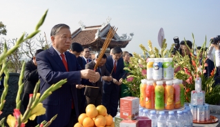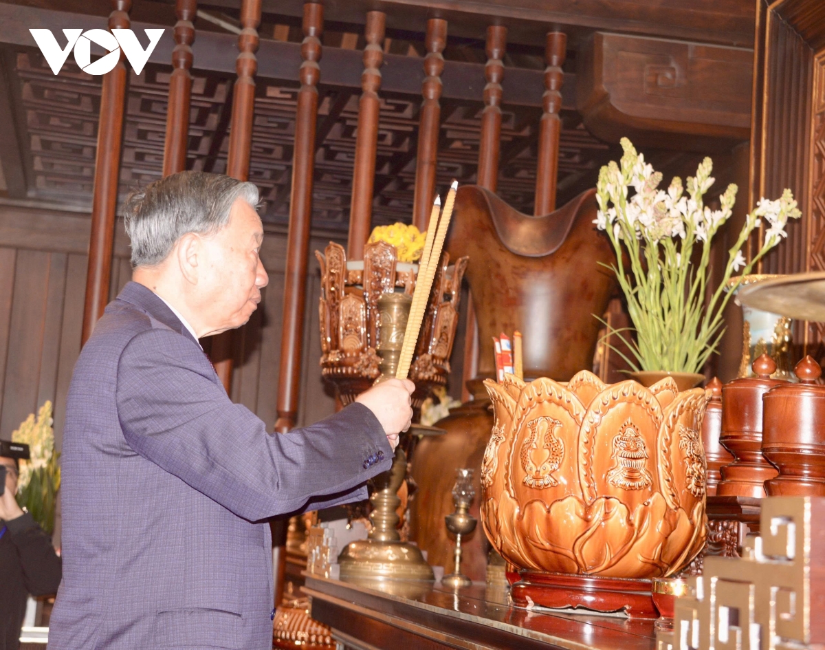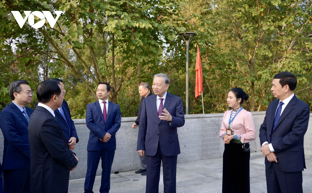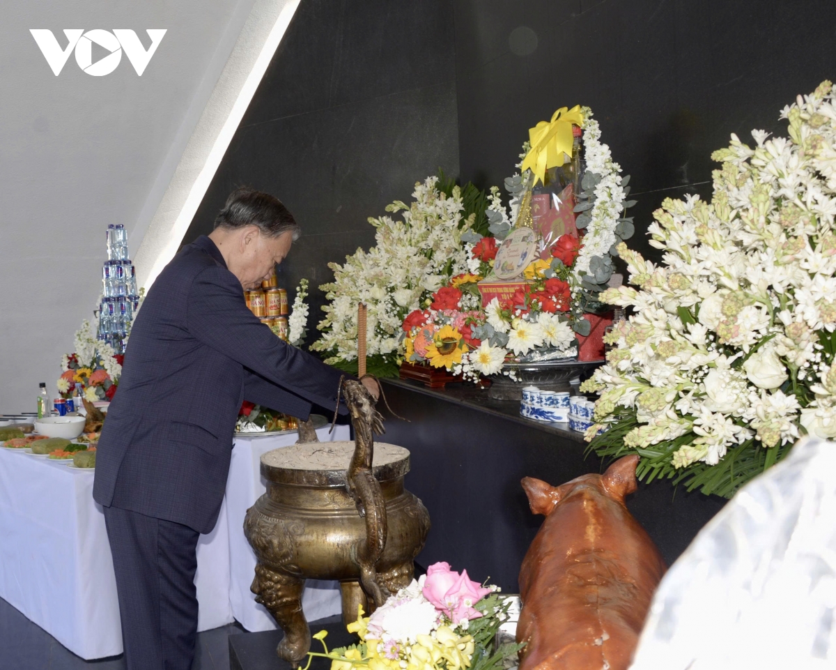 Sáng cùng ngày, Tổng Bí thư Tô Lâm và Đoàn công tác đã tới dâng hoa, dâng hương tưởng niệm Anh hùng liệt sĩ tại Đền thờ Liệt sĩ tại Chiến trường Điện Biên Phủ và Nghĩa trang Liệt sĩ Quốc gia A1.
