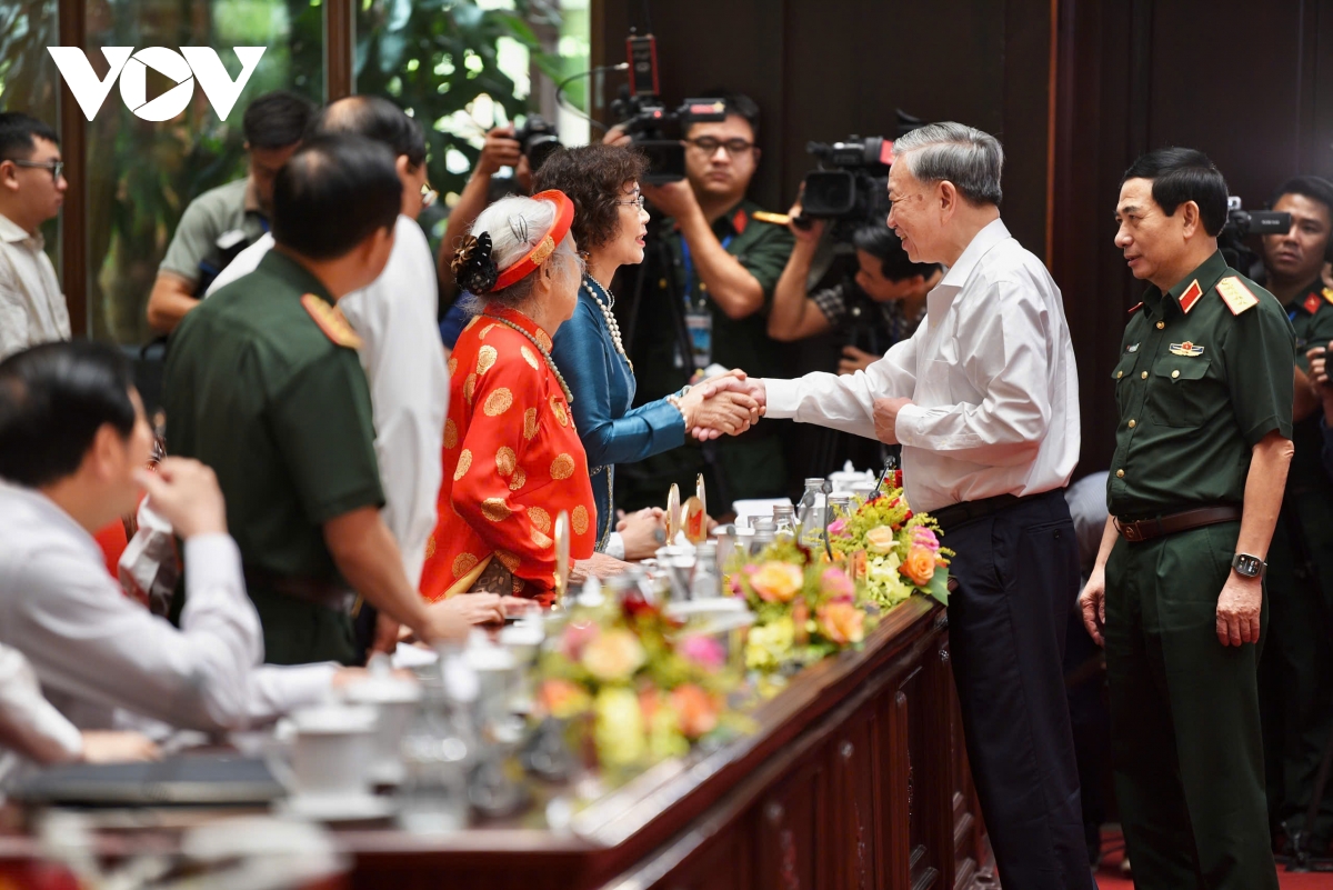 Nói chuyện thân mật với các đại biểu, Tổng Bí thư Tô Lâm khẳng định, sự hy sinh xương máu của toàn thể những người có công và các đại biểu có mặt ngày hôm nay có ý nghĩa vô cùng to lớn với nhân dân, đất nước. Đồng thời nhận định, đến nay dù trong thời bình, các đại biểu đã nghỉ công tác, nhưng vẫn tiếp tục phát huy bản chất “Bộ đội Cụ Hồ”, vẫn mang tinh thần “quyết chiến quyết thắng”, là chỗ dựa vững chắc cho thế hệ con cháu.