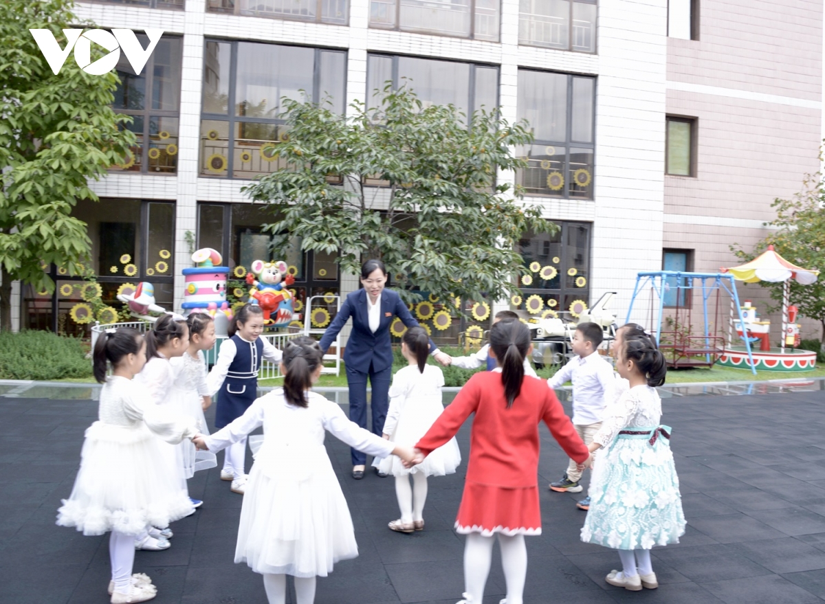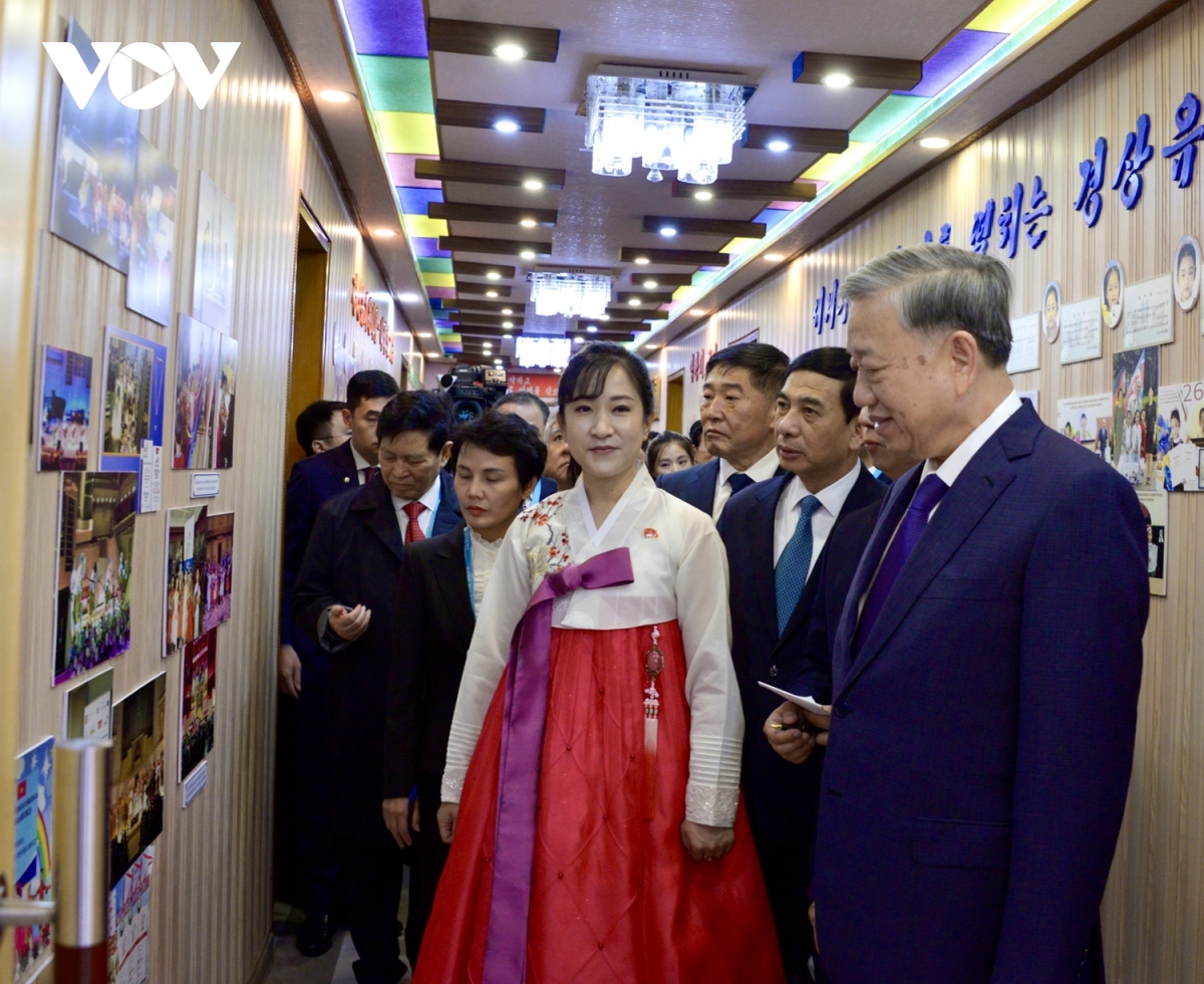 VOV.VN - Trong khuôn khổ chuyến thăm Cấp nhà nước tới Triều Tiên và dự lễ kỷ niệm 80 năm thành lập Đảng Lao động Triều Tiên, chiều 9/10 (theo giờ địa phương), Tổng Bí thư Tô Lâm tới thăm Trường mẫu giáo Kiêng Sang và lớp học mang tên Chủ tịch Hồ Chí Minh.