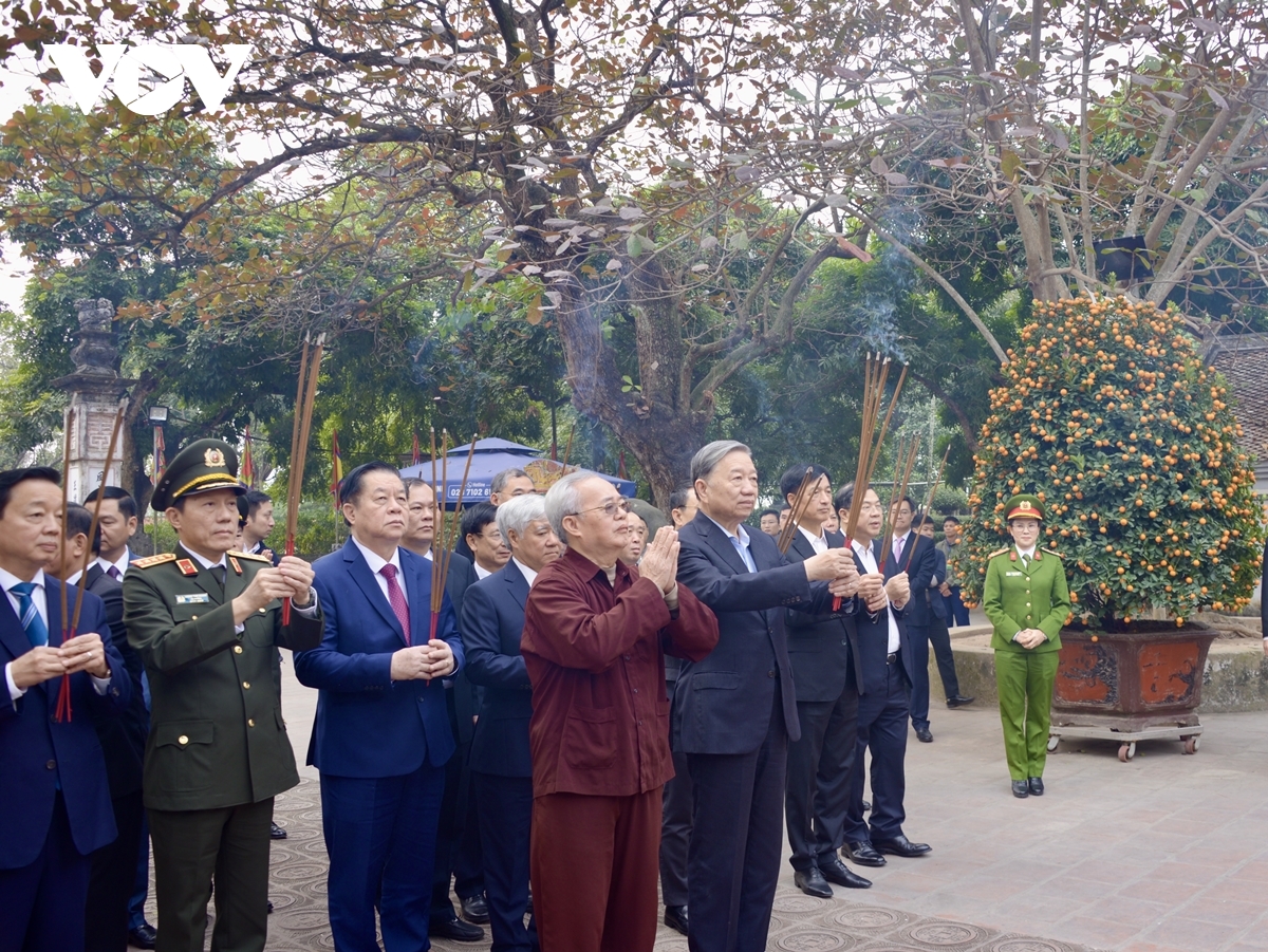 Tổng Bí thư Tô Lâm và đoàn công tác dâng hương tại Khu di tích lịch sử - văn hóa Đền Trần.