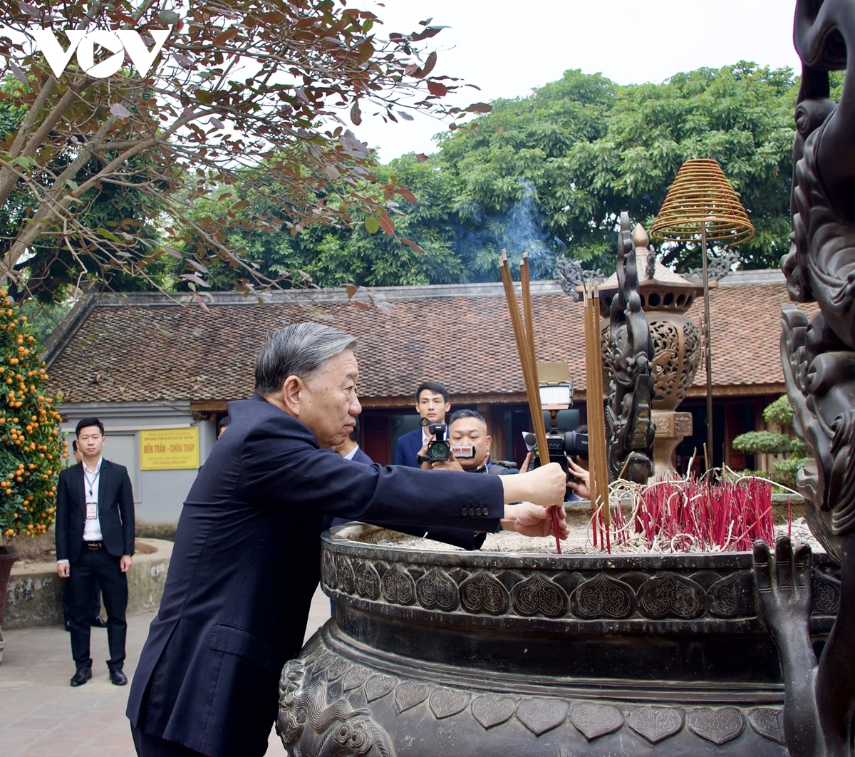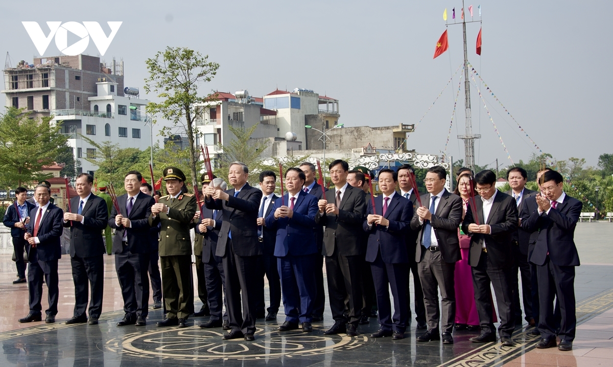 VOV.VN - Tổng Bí thư Tô Lâm thành kính dâng hương tưởng nhớ công lao Tổng Bí thư Trường Chinh - người chiến sĩ cộng sản kiên trung, nhà lãnh đạo kiệt xuất của cách mạng Việt Nam, nhà chính trị, tư tưởng, văn hoá, lý luận, nhà báo, nhà thơ; người con ưu tú của quê hương Nam Định.
