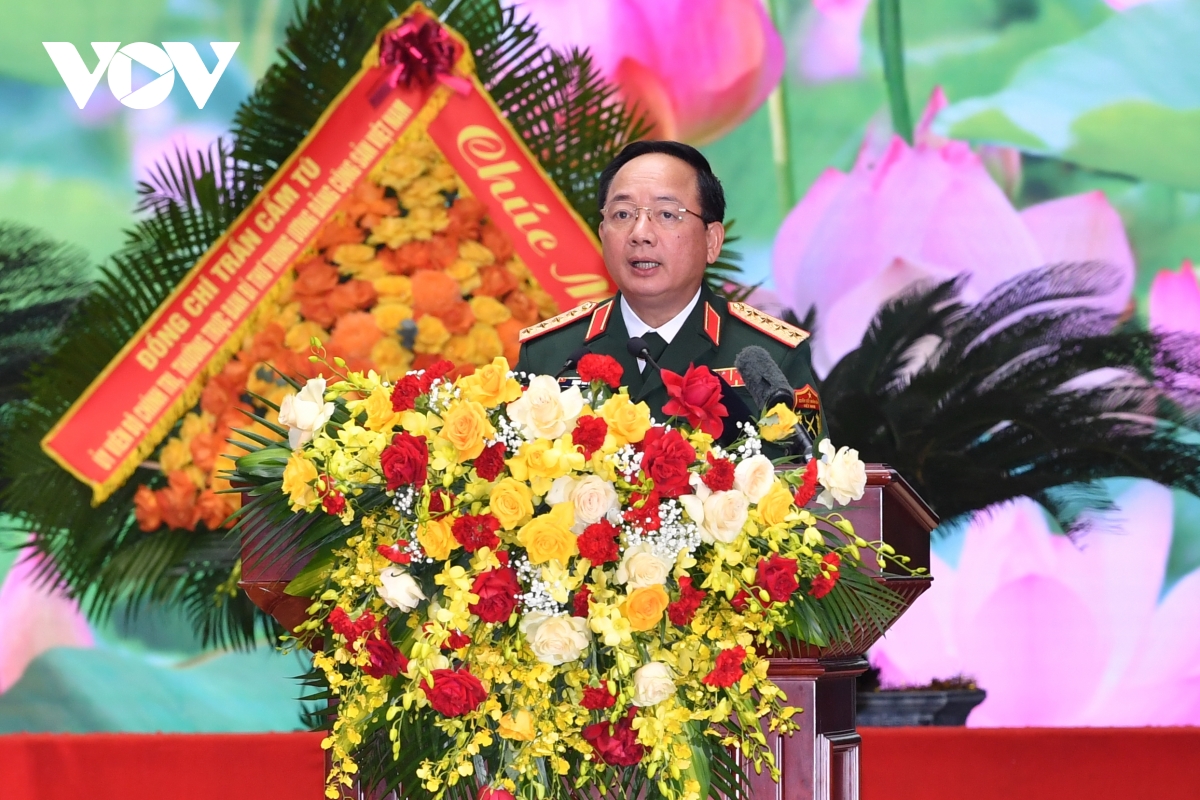 Đại tướng Trịnh Văn Quyết, Chủ nhiệm Tổng cục Chính trị Quân đội nhân dân Việt Nam phát biểu tại đại hội.