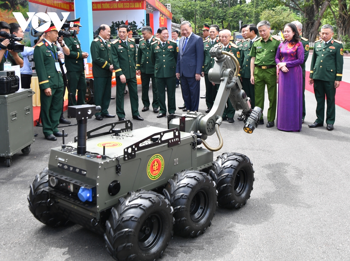 Tổng Bí thư Tô Lâm và các đại biểu tham quan khu trưng bày các mô hình, sản phẩm, tư liệu, hình ảnh chào mừng đại hội.