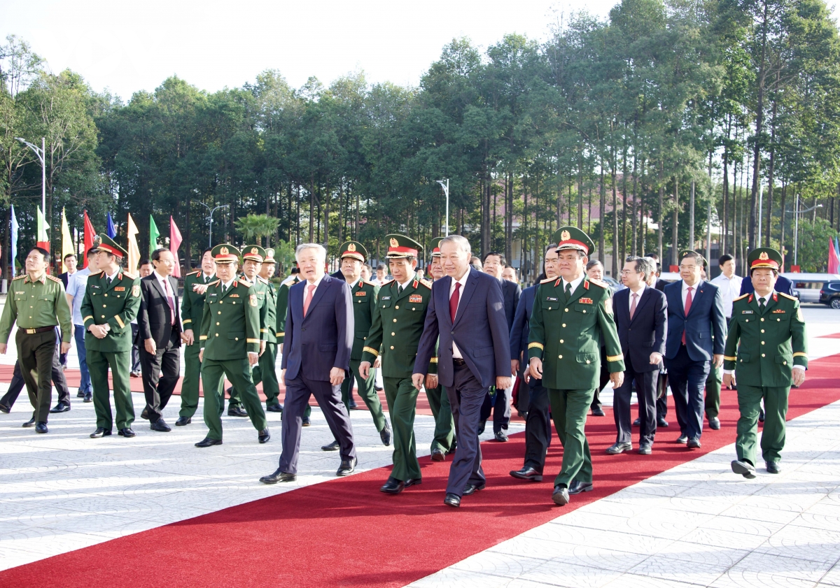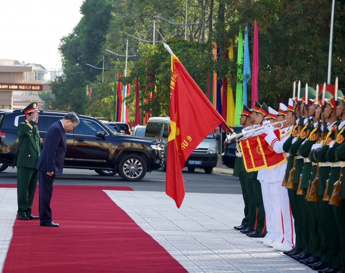 Lãnh đạo Bộ Quốc phòng và Quân khu 9 đón Tổng Bí thư Tô Lâm.
