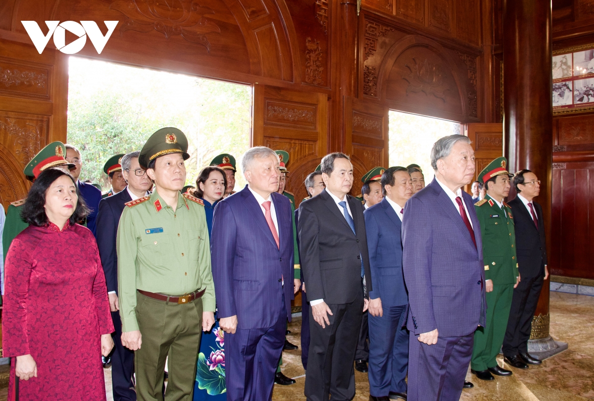Trong không khí trang nghiêm, Tổng Bí thư cùng đoàn công tác và các đại biểu đã bày tỏ lòng thành kính, tưởng nhớ và tri ân đối với công lao to lớn của Chủ tịch Hồ Chí Minh vĩ đại và các anh hùng liệt sĩ.