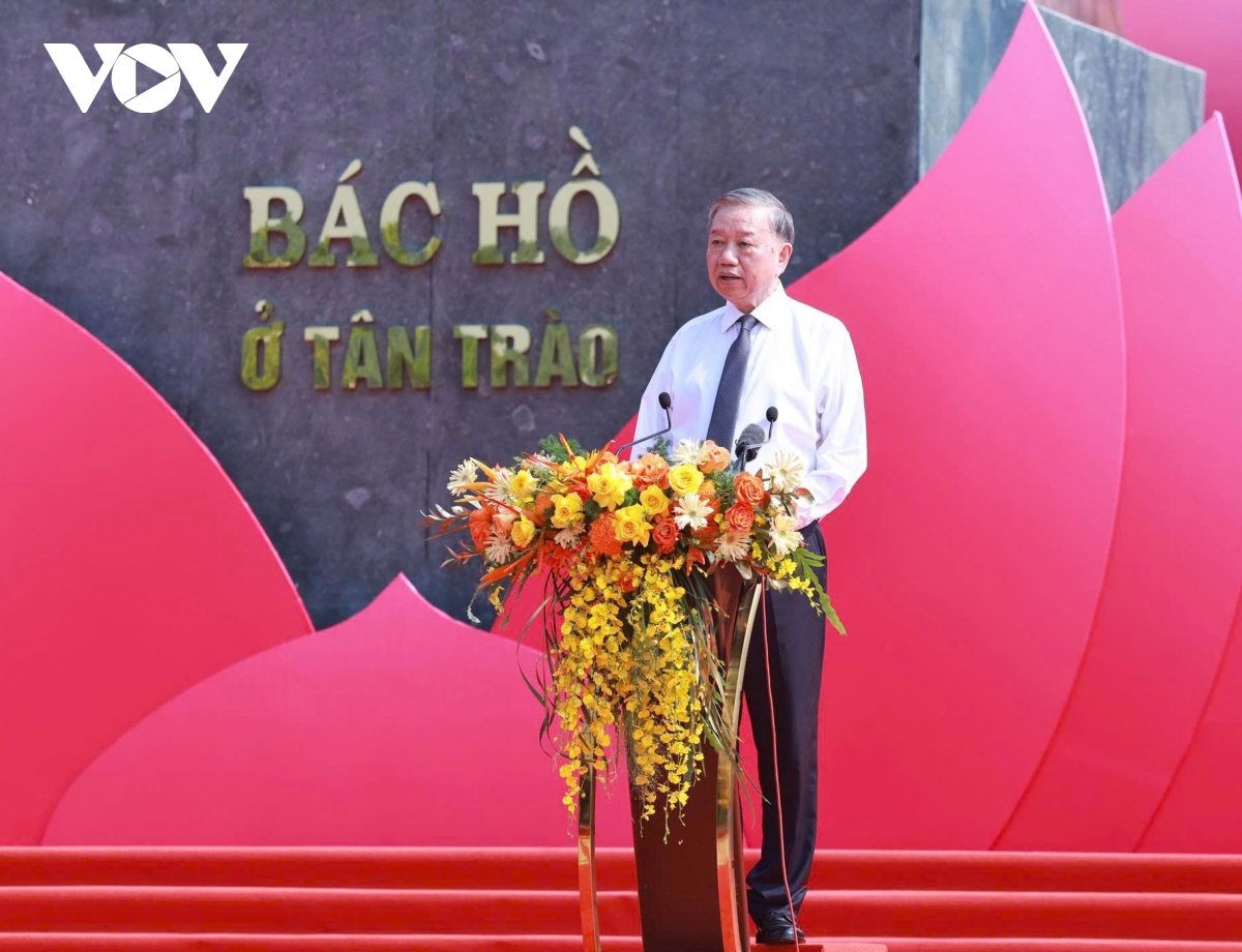 Phát biểu tại ngày hội, Tổng Bí thư Tô Lâm bày tỏ vui mừng, xúc động về lại xã Tân Trào, tỉnh Tuyên Quang, vùng đất lịch sử thiêng liêng, nơi từng là Thủ đô kháng chiến, khởi nguồn của những quyết định trọng đại đưa đất nước đến độc lập, tự do để dự Lễ Ngày hội toàn dân bảo vệ an ninh Tổ quốc và khánh thành Tượng đài “Bác Hồ ở Tân Trào”.