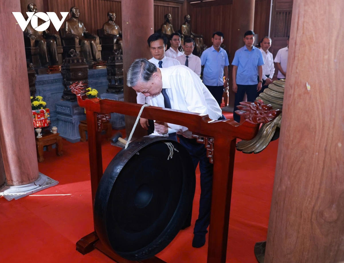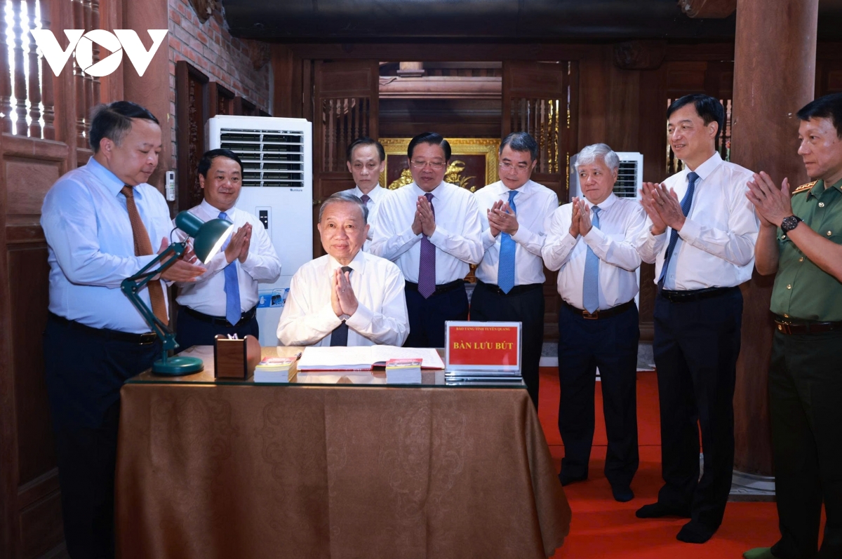 Trước đó, Tổng Bí thư Tô Lâm và Đoàn công tác của Trung ương đã dâng hương tưởng nhớ Chủ tịch Hồ Chí Minh cùng các bậc tiền bối cách mạng tại Khu tưởng niệm các vị tiền bối cách mạng Tân Trào: