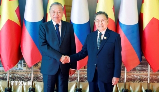 Phát biểu tại buổi gặp gỡ, Tổng Bí thư Tô Lâm cho biết, chuyến thăm cấp Nhà nước tới Lào lần này của Đoàn đại biểu cấp cao Việt Nam diễn ra đúng vào dịp nước Lào kỷ niệm 50 năm Quốc khánh - một dấu mốc trọng đại trong lịch sử phát triển của đất nước Triệu Voi. Trong khuôn khổ chuyến thăm, lãnh đạo hai nước đã có các cuộc hội đàm, hội kiến trao đổi sâu rộng, rất hiệu quả; đã nhất trí nâng quan hệ Việt Nam - Lào lên tầm mức mới: "Hữu nghị vĩ đại, đoàn kết đặc biệt, hợp tác toàn diện, gắn kết chiến lược", thể hiện tầm nhìn chung, lợi ích chiến lược đan xen và định hướng đồng hành lâu dài vì sự phát triền bền vững, tự cường và thịnh vượng chung của hai dân tộc.