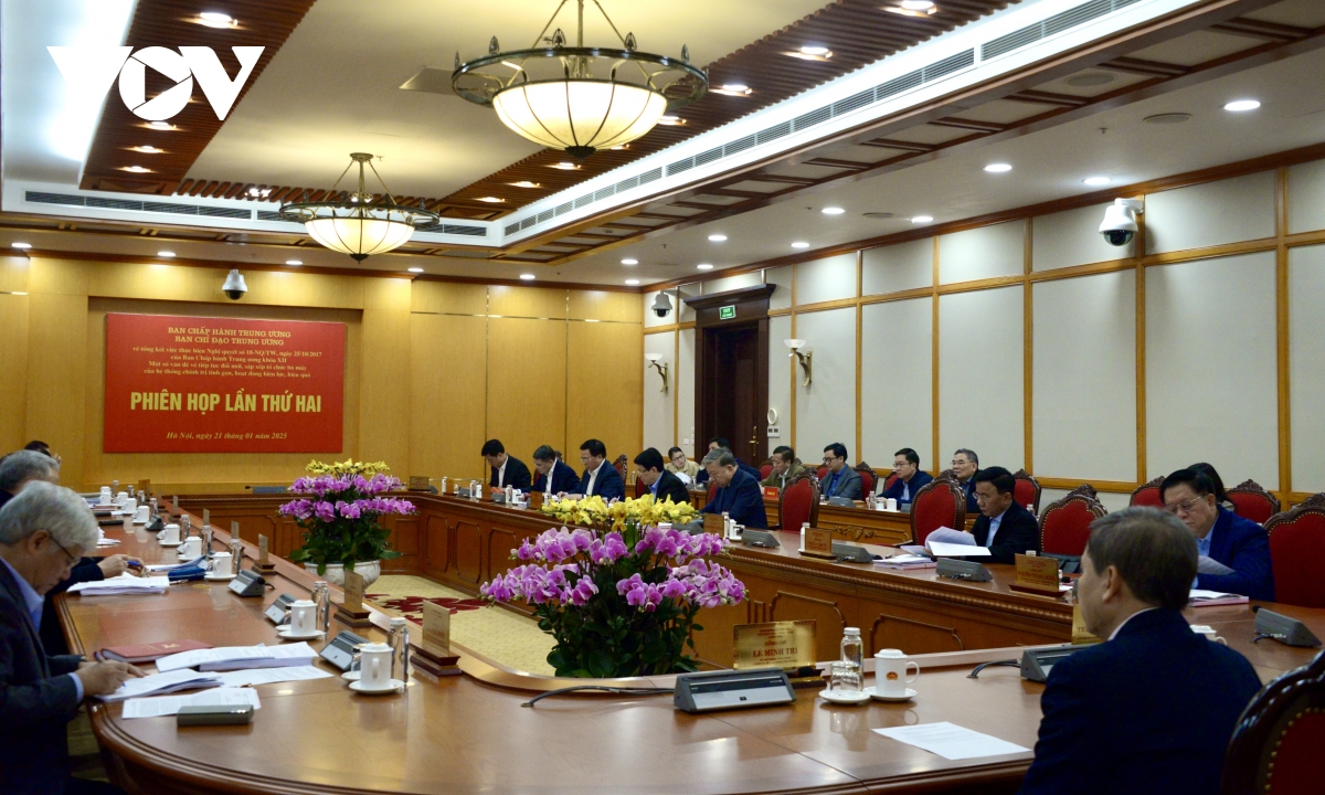 Tại phiên họp, Ban Chỉ đạo thống nhất duy trì hoạt động và tiếp tục thực hiện nhiệm vụ tham mưu Bộ Chính trị, Ban Bí thư lãnh đạo, chỉ đạo các cấp ủy, tổ chức đảng, cơ quan, đơn vị, địa phương triển khai các nhiệm vụ, giải pháp theo kết luận của Ban Chấp hành Trung ương, đặc biệt là các nhiệm vụ cần thực hiện trong năm 2025 và tiếp tục nghiên cứu, đề xuất các nội dung mới để bổ sung, hoàn thiện các dự thảo văn kiện Đại hội XIV, làm cơ sở tham mưu xây dựng dự thảo Nghị quyết Đại hội về tiếp tục hoàn thiện mô hình của hệ thống chính trị, tinh gọn tổ chức bộ máy, nâng cao hiệu quả hoạt động.