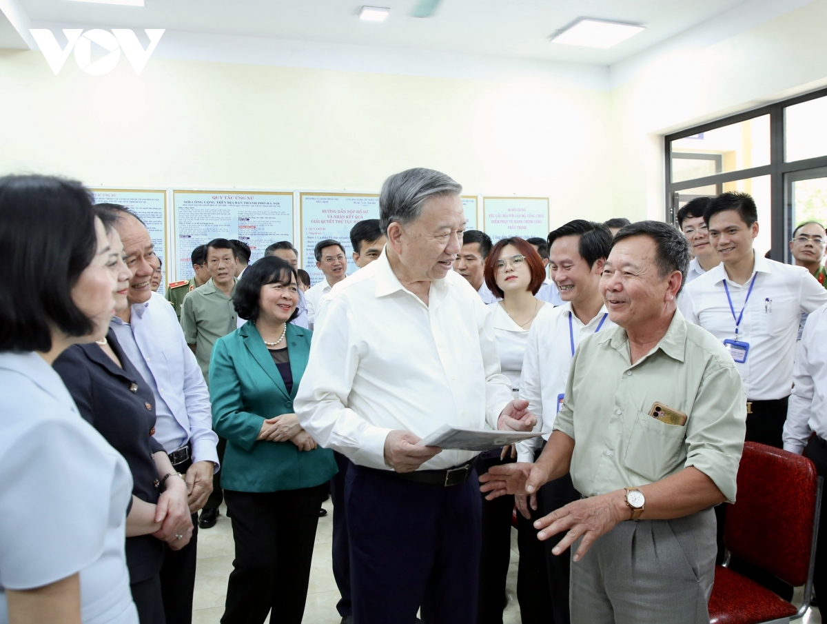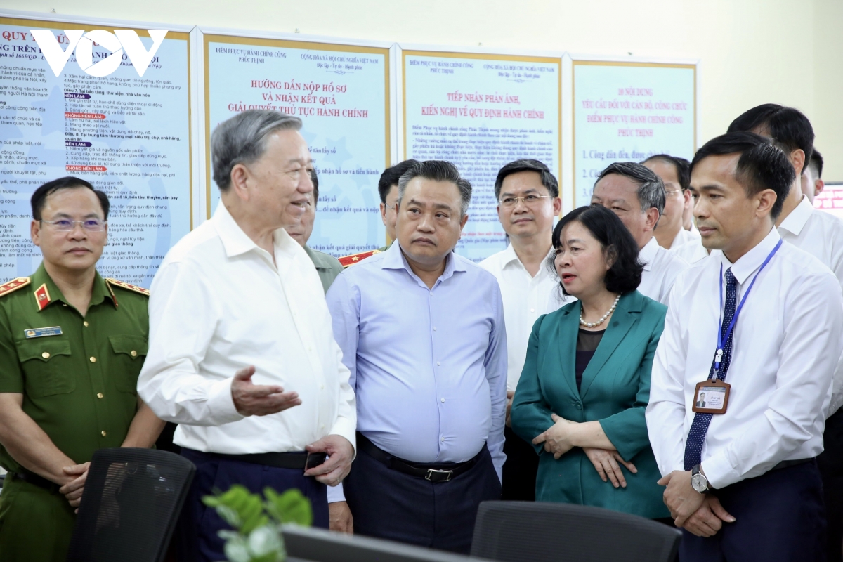VOV.VN - Chiều 1/7 tại Hà Nội, trong ngày đầu tiên hoạt động của chính quyền địa phương 2 cấp trên cả nước, Tổng Bí thư Tô Lâm đã đến thăm kiểm tra quá trình vận hành hoạt động tại xã Phúc Thịnh, Trung tâm Dịch vụ Hành chính công trên đường Võ Chí Công và tại phường Tây Hồ.
