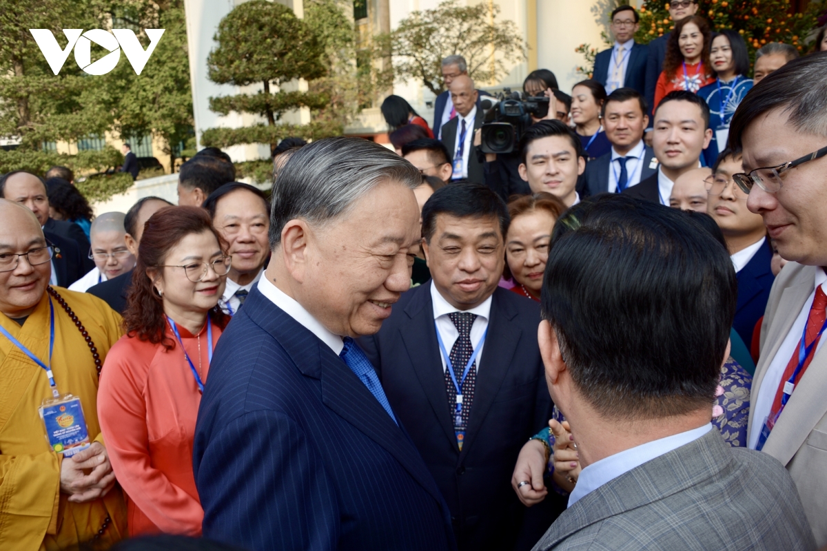VOV.VN - Chiều 19/1, tại trụ sở Trung ương Đảng, Tổng Bí thư Tô Lâm tới dự và chủ trì buổi gặp mặt đoàn đại biểu 100 kiều bào tiêu biểu nhân dịp về nước tham dự Chương trình Xuân quê hương 2025.