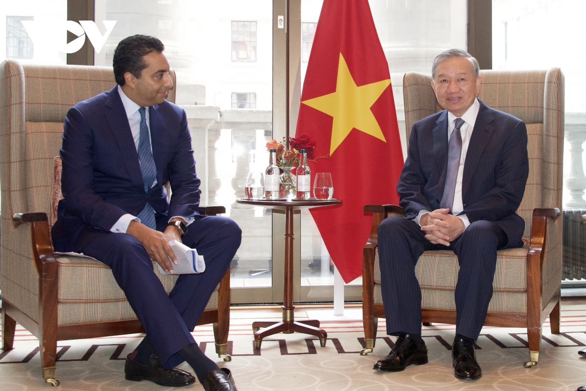 Tiếp Tổng Giám đốc Ngân hàng Standard Chartered tại Anh ông Saif Malik, Tổng Bí thư Tô Lâm đánh giá cao những hiệu quả trong hợp tác tài chính, ngân hàng thời gian qua giữa Việt Nam – Anh, mong muốn thời gian tới Ngân hàng sẽ tiếp tục chia sẻ, tư vấn và hỗ trợ để Việt Nam trở thành trung tâm tài chính của khu vực.