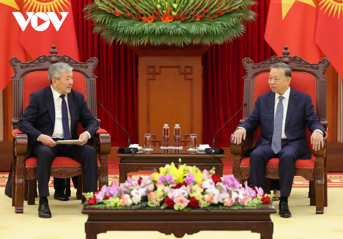 Tổng Bí thư Tô Lâm chúc mừng những thành tựu quan trọng của Kyrgyzstan thời gian qua dưới sự lãnh đạo của Tổng thống Sadyr Japarov và sự điều hành của Chính phủ Kyrgyzstan; khẳng định Việt Nam coi trọng quan hệ hữu nghị với Kyrgyzstan - nước bạn bè truyền thống đã ủng hộ nhân dân Việt Nam trong cuộc đấu tranh giành độc lập trước đây và trong công cuộc xây dựng đất nước ngày nay, nhấn mạnh đây là tài sản vô giá đã được lãnh đạo và nhân dân hai nước gây dựng.