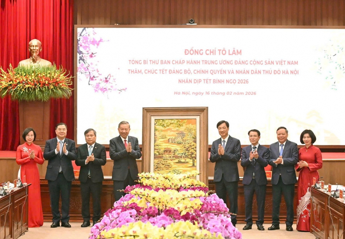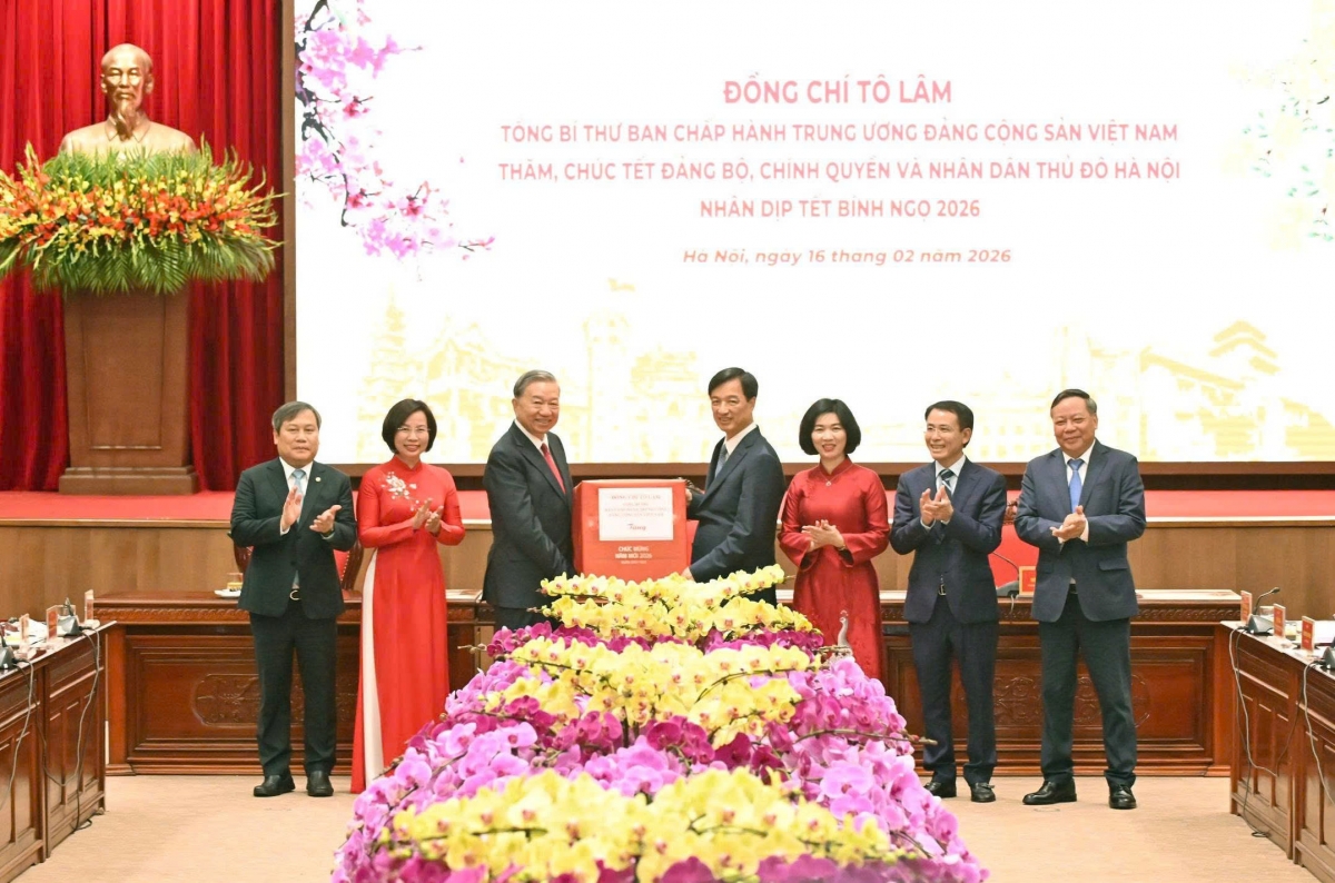 Trong không khí phấn khởi kỷ niệm 96 năm ngày thành lập Đảng Cộng sản Việt Nam (3/2/1930-3/2/2026), mừng Xuân mới Bính Ngọ - 2026, chào mừng thành công Đại hội toàn quốc lần thứ 14 của Đảng, tối nay 16/2 (tức 29 Tết), trước thời khắc giao thừa thiêng liêng chuyển giao giữa năm cũ và năm mới, Tổng Bí thư Tô Lâm đã tới thăm, chúc Tết Đảng bộ, chính quyền, quân và dân thủ đô Hà Nội. Cùng dự có các đồng chí Uỷ viên Bộ Chính trị, Chánh Văn phòng Trung ương Đảng Phạm Gia Túc và Bí thư Thành ủy Hà Nội Nguyễn Duy Ngọc.