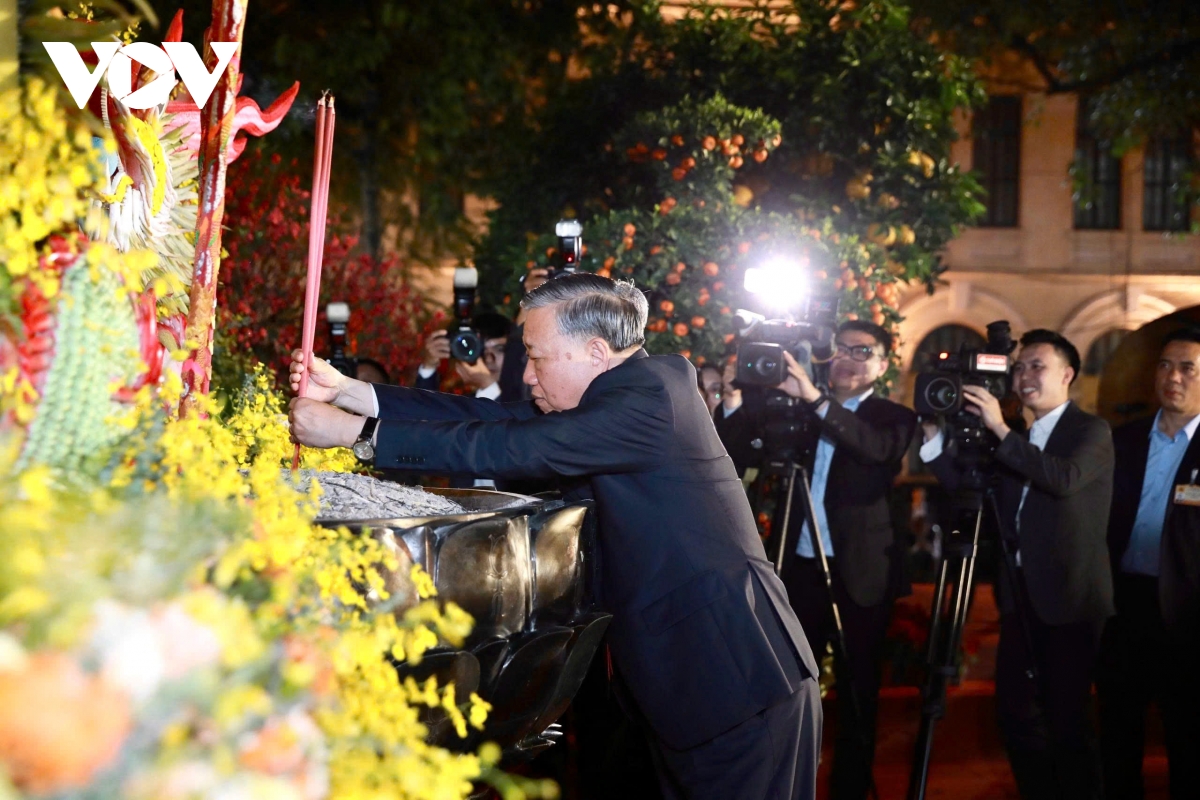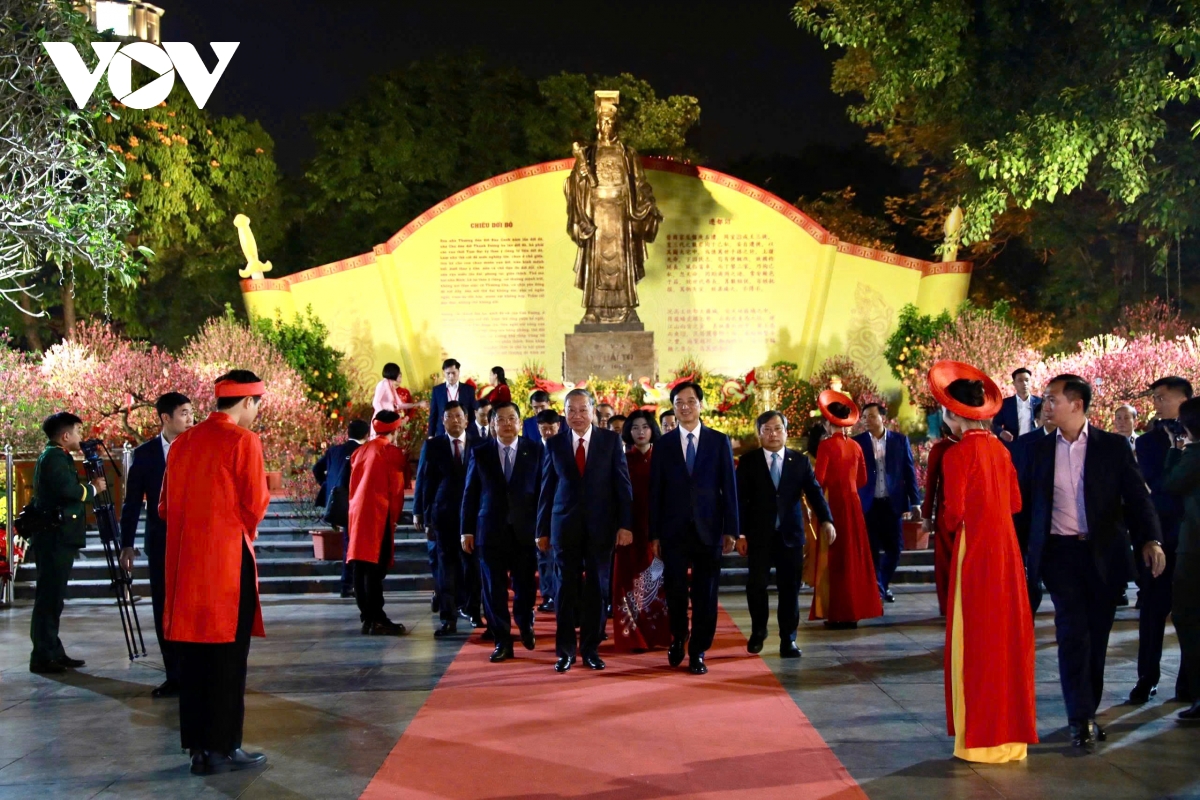 Trong không khí linh thiêng, mừng xuân mới, Tổng Bí thư Tô Lâm đã thành kính dâng hương tưởng nhớ công ơn của Đức vua Lý Thái Tổ và các vị tiên hiền, tiên liệt, các vị liệt tổ, liệt tông đã xây dựng và bảo vệ Thăng Long - Hà Nội nghìn năm văn hiến, gìn giữ non sông gấm vóc Việt Nam anh hùng, bồi đắp những giá trị văn hóa, lịch sử truyền thống vô cùng quý giá cho Thủ đô và đất nước mãi trường tồn; đồng thời, bày tỏ lòng thành kính cầu cho quốc thái dân an, đất nước vững tin bước vào kỷ nguyên phát triển mới với nhiều thành công đột phá hơn nữa, vì hòa bình, độc lập, dân chủ, giàu mạnh, phồn vinh, văn minh, hạnh phúc.