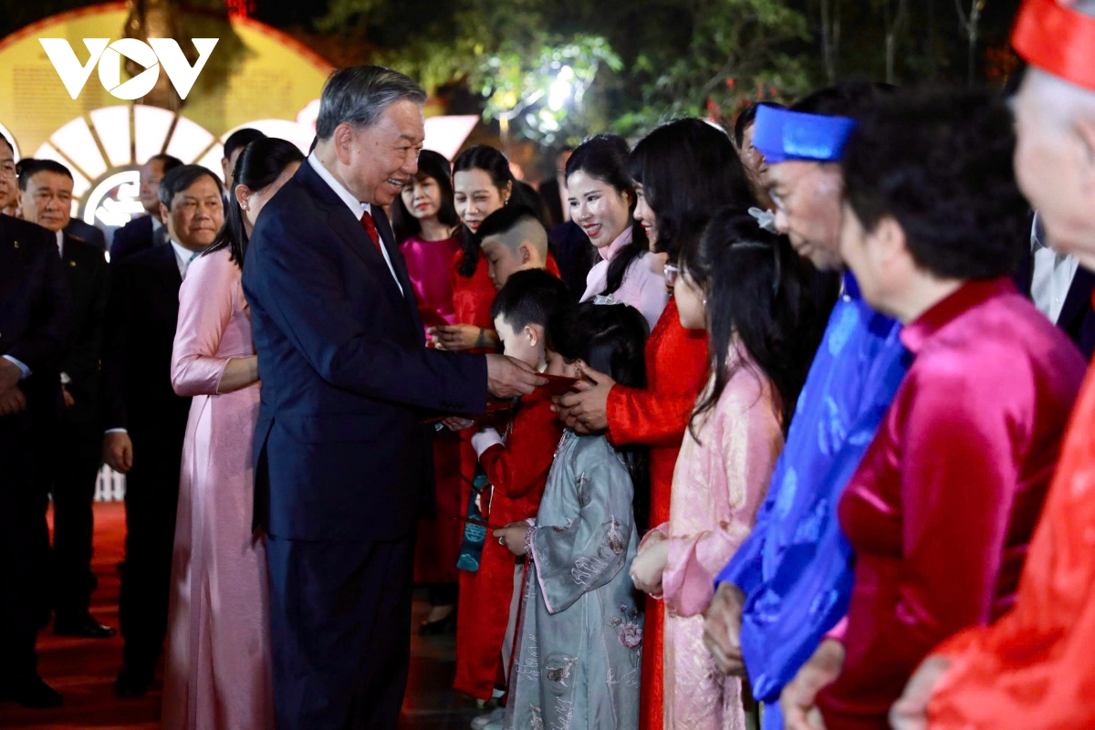 Trước đó, Tổng Bí thư Tô Lâm đã đến dâng hương tại Tượng đài Vua Lý Thái Tổ; thăm hỏi, chúc Tết nhân dân thủ đô đón năm mới tại khu vực Vườn hoa Lý Thái Tổ.