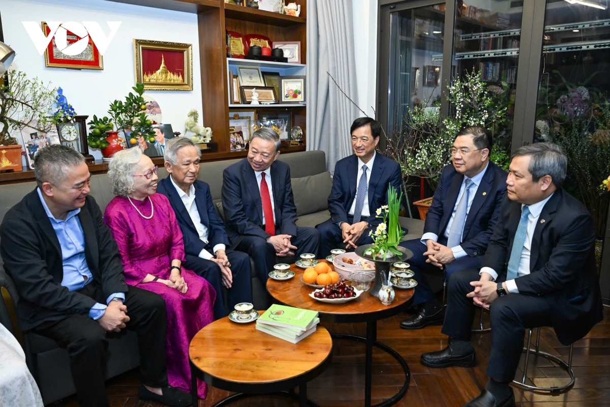 Tối cùng ngày, Tổng Bí thư Tô Lâm cũng đã tới thăm và chúc tết gia đình GS-TS Nhà giáo Nguyễn Lân Dũng và PGS-TS Thầy thuốc nhân dân, Đại tá Nguyễn Kim Nữ Hiếu, Công dân thủ đô ưu tú năm 2025, nguyên phó Giám đốc Bệnh viện Trung ương Quân đội 108.