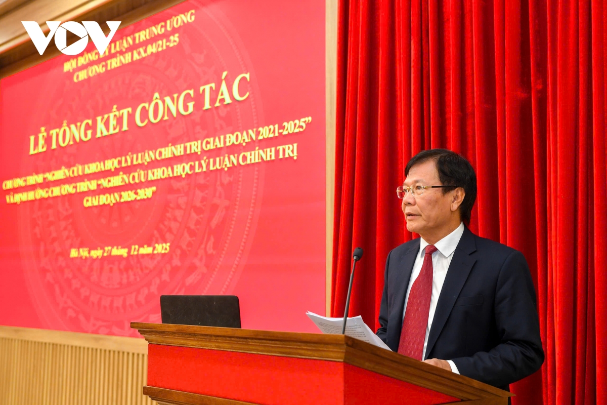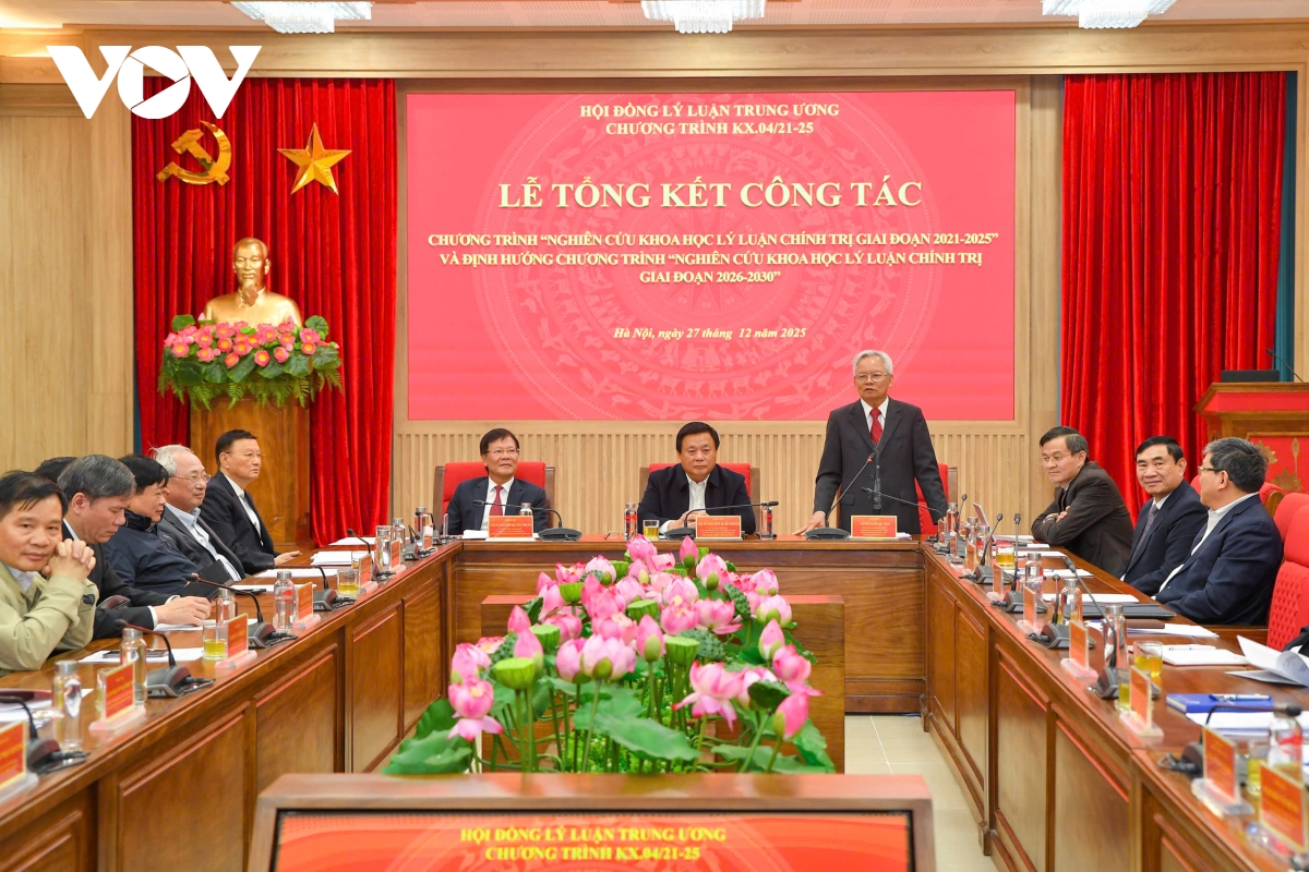 VOV.VN - Chiều nay (27/12), tại Hà Nội, Hội đồng lý luận Trung ương tổ chức Tổng kết Chương trình “Nghiên cứu khoa học lý luận chính trị giai đoạn 2021-2025 (KX.04/21-25) và định hướng Chương trình “Nghiên cứu khoa học lý luận chính trị giai đoạn 2026-2030”.