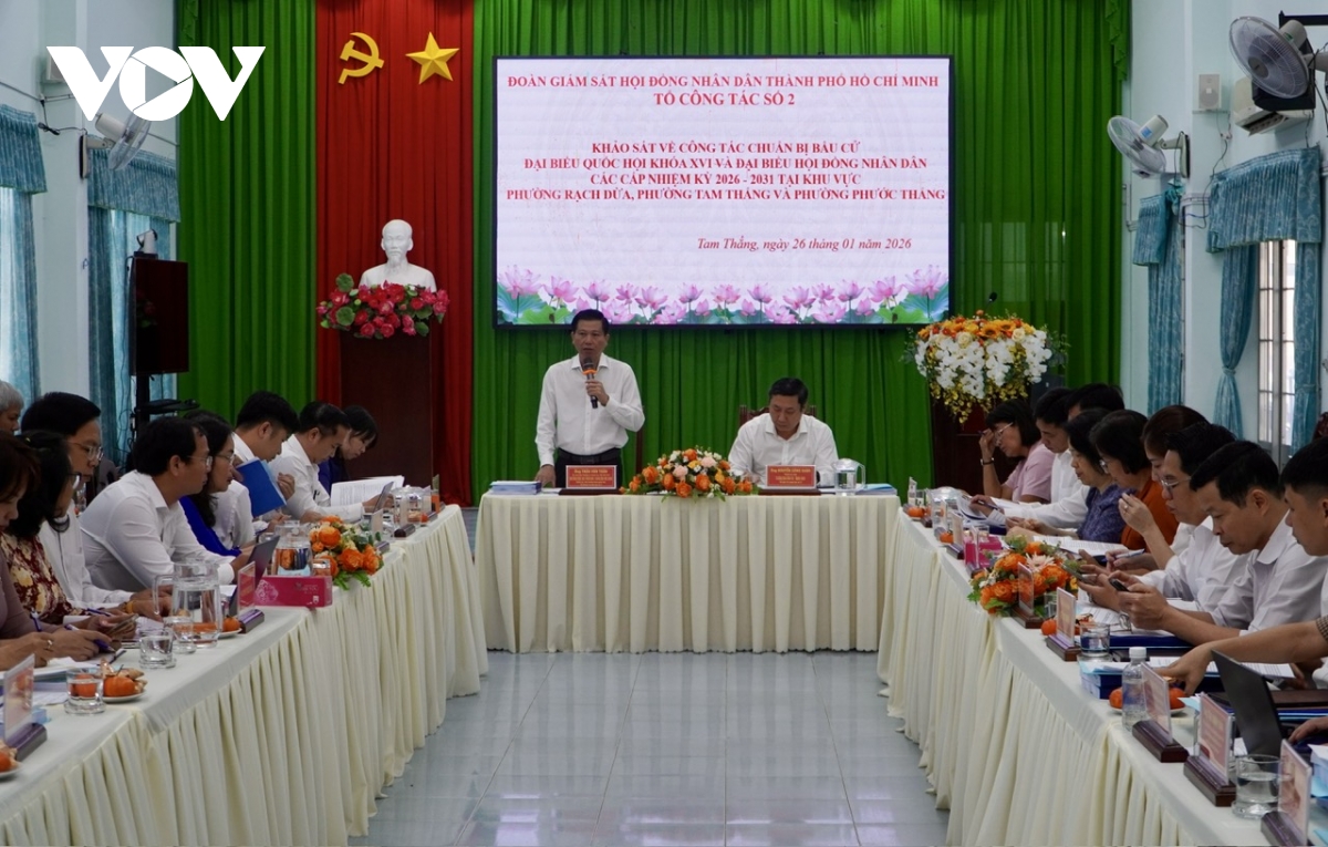 VOV.VN - Ngày 26/1, tại buổi khảo sát công tác chuẩn bị bầu cử Đại biểu Quốc hội (ĐBQH) khoá XVI và HĐND các cấp nhiệm kỳ 2026-2031 ở các phường, xã có điểm bỏ phiếu sớm, Tổ đại biểu số 2 HĐND TP.HCM yêu cầu các địa phương khẩn trương thống kê số lượng cử tri, có phương án, địa điểm bỏ phiếu sớm sao cho đúng quy trình.