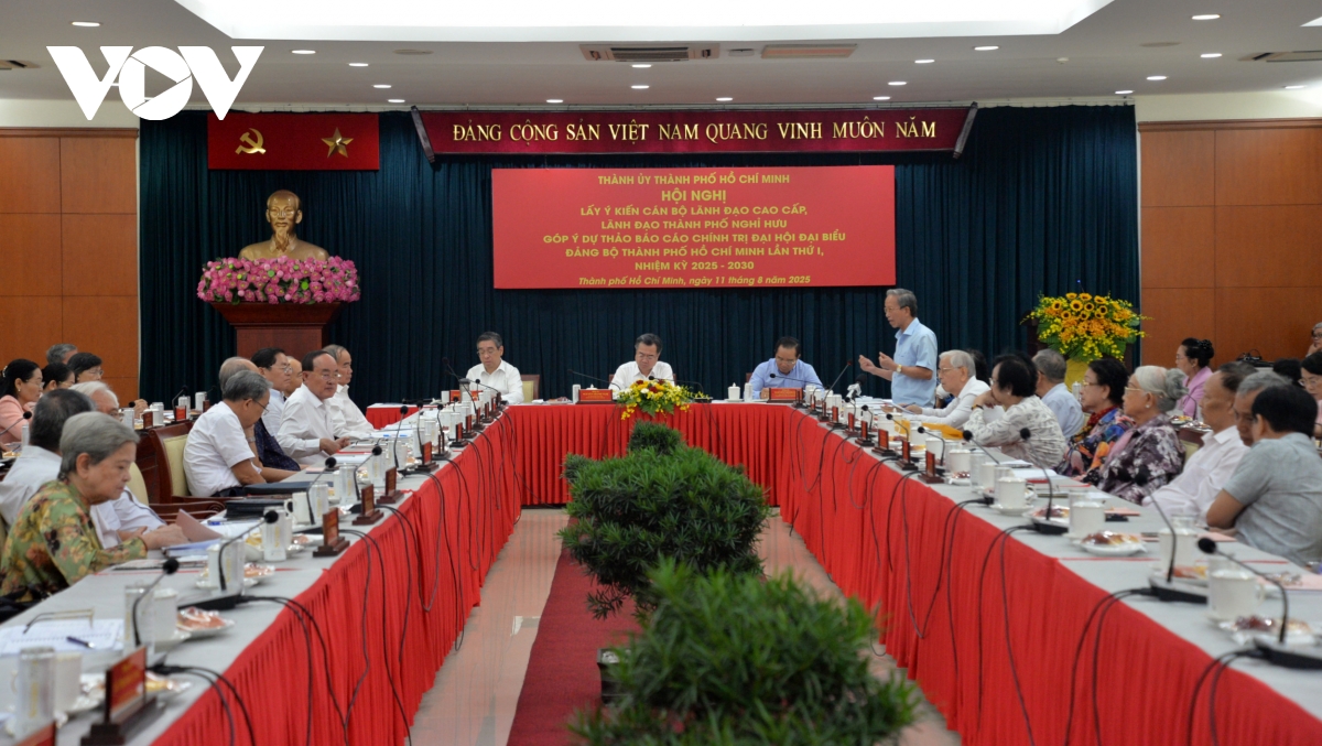 VOV.VN - Sáng 11/8, Thành ủy TP.HCM tổ chức hội nghị lấy ý kiến các cán bộ lãnh đạo cấp cao nghỉ hưu, góp ý cho dự thảo Báo cáo Chính trị của Đại hội Đảng bộ lần thứ I (nhiệm kỳ 2025-2030).