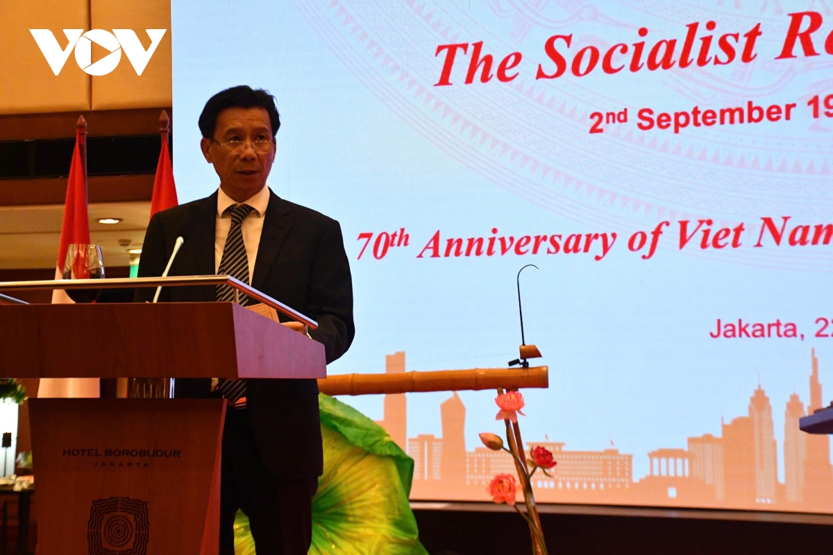 VOV.VN - Tối 22/9, Đại sứ quán Việt Nam tại Indonesia đã tổ chức trọng thể Lễ kỷ niệm 80 năm Quốc khánh nước Cộng hòa Xã hội chủ nghĩa Việt Nam tại Jakarta, Indonesia.