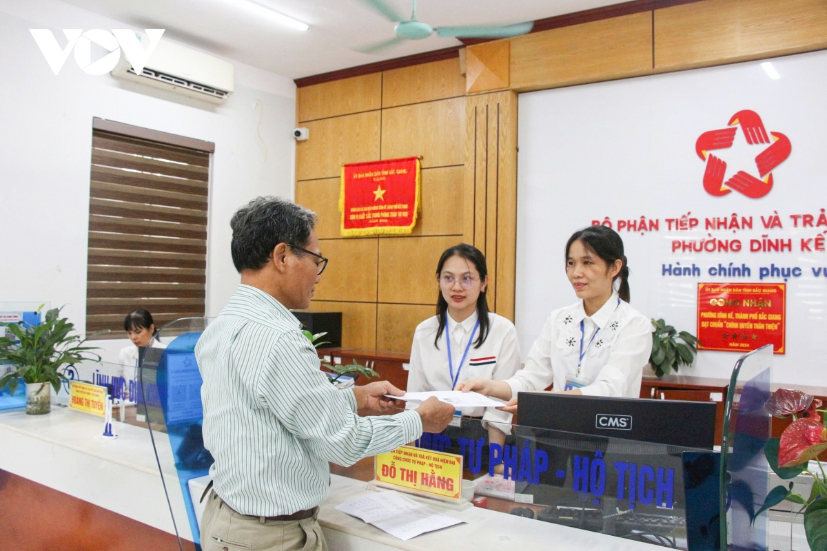 Cán bộ bộ phận tiếp nhận và trả kết quả phường Dĩnh Kế (dự kiến là phường Bắc Giang mới) hướng dẫn người dân làm thủ tục