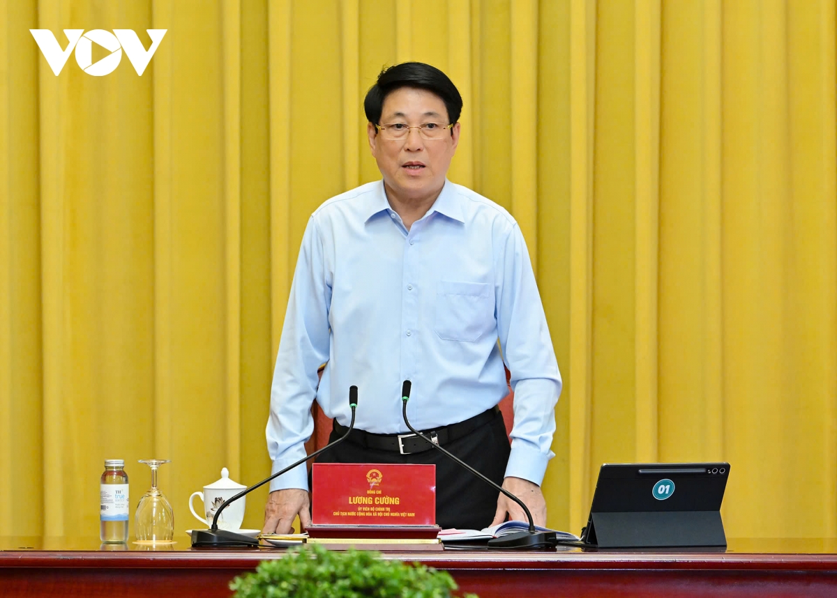 Chủ tịch nước Lương Cường phát biểu tại buổi làm việc