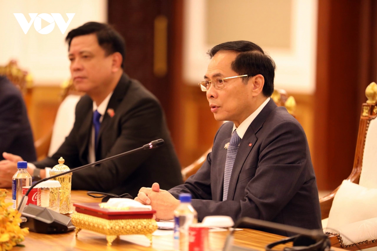 Phó Thủ tướng Bùi Thanh Sơn chúc mừng những thành tựu to lớn mà Campuchia đã đạt được kể từ đầu nhiệm kỳ VII của Chính phủ Vương quốc Campuchia do Thủ tướng Hun Manet đứng đầu, trong đó chính trị ổn định, kinh tế tiếp tục tăng trưởng, đời sống người dân được cải thiện, vai trò và vị thế quốc tế của Campuchia tiếp tục được nâng cao.