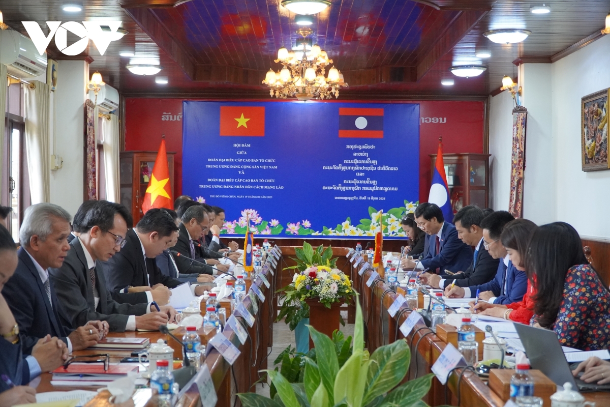 VOV.VN - Trong khuôn khổ chuyến thăm và làm việc tại Lào, chiều qua (19/8), Đoàn đại biểu Ban Tổ chức Trung ương Đảng Cộng sản Việt Nam đã có cuộc hội đàm với Đoàn đại biểu Ban Tổ chức Trung ương Đảng Nhân dân Cách mạng Lào.