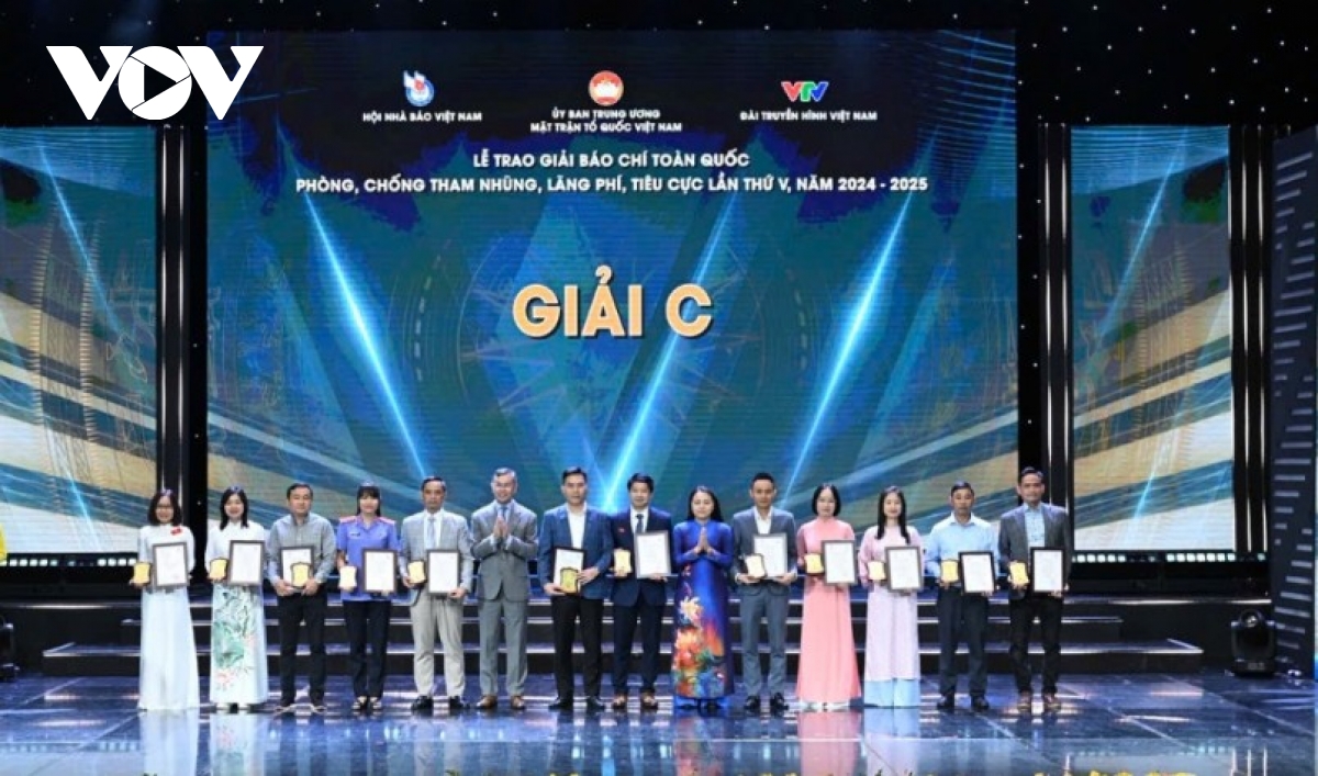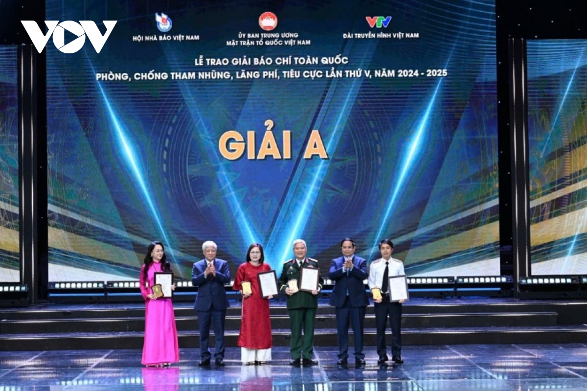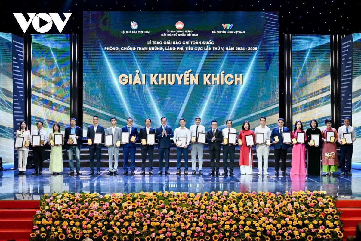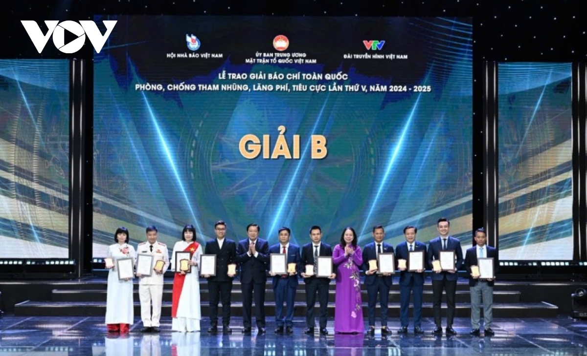 VOV.VN - Tối 30/10, tại Hà Nội, diễn ra Lễ trao Giải báo chí toàn quốc phòng, chống tham nhũng, lãng phí, tiêu cực lần thứ V, năm 2024-2025. Đài Tiếng nói Việt Nam có 1 tác phẩm đoạt giải A, 1 tác phẩm đoạt giải B, 1 tác phẩm giải C và 1 tác phẩm giải khuyến khích.
