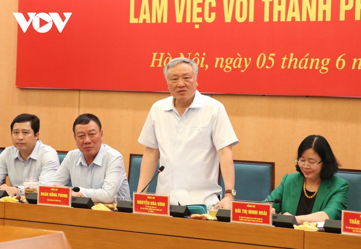 VOV.VN - Thực hiện Kết luận của Tổng Bí thư Tô Lâm, chiều nay (5/6), Phó Thủ tướng Thường trực Chính phủ Nguyễn Hòa Bình cùng các thành viên Tổ công tác của Thủ tướng Chính phủ làm việc với lãnh đạo thành phố Hà Nội về giải quyết dứt điểm các vụ việc khiếu nại, tố cáo kéo dài tại Hà Nội.