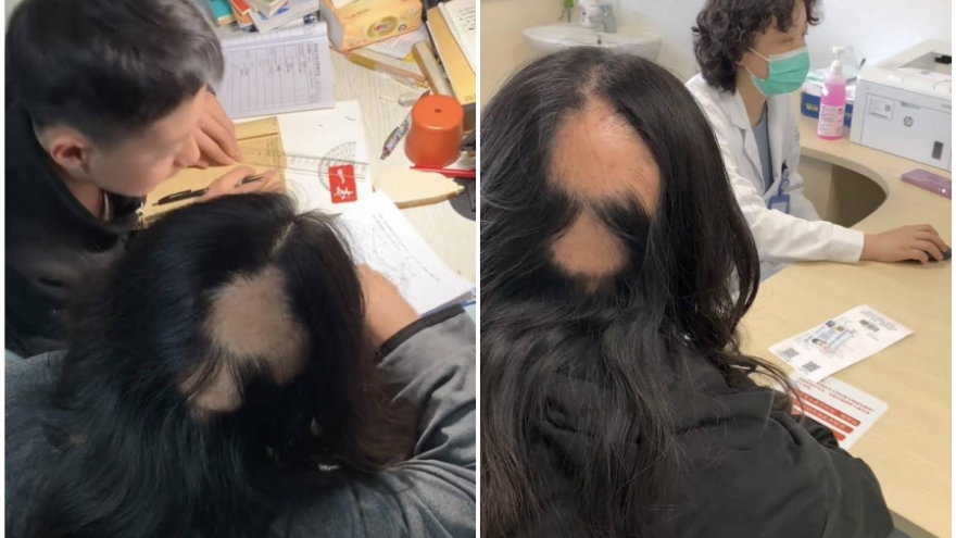 VOV.VN - Chịu áp lực và thức khuya dạy con học trong thời gian dài, người phụ nữ ở Trung Quốc bàng hoàng phát hiện bản thân bị rụng tóc từng mảng lớn trên đỉnh đầu.