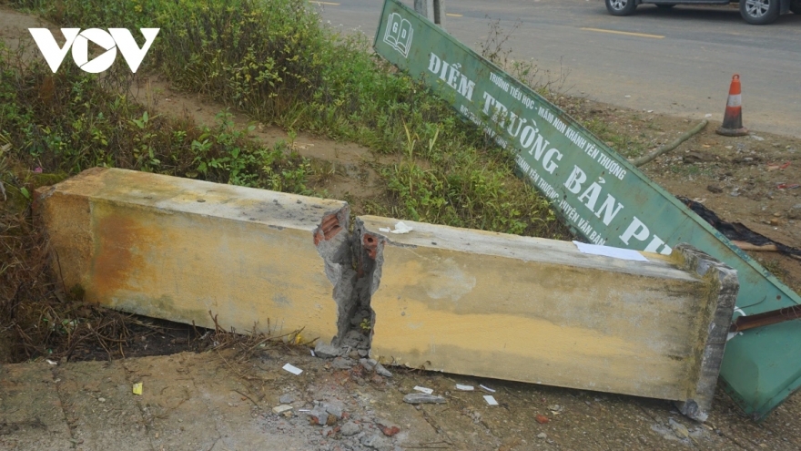 VOV.VN - Tại xã Sơn Lương, tỉnh Lào Cai vừa xảy ra vụ tai nạn đặc biệt nghiêm trọng. Trong lúc vui chơi tại khu vực cổng Trường Phổ thông Dân tộc Bán trú THCS Nậm Mười, hai cháu nhỏ không may bị trụ cổng đổ sập đè trúng, dẫn đến tử vong.