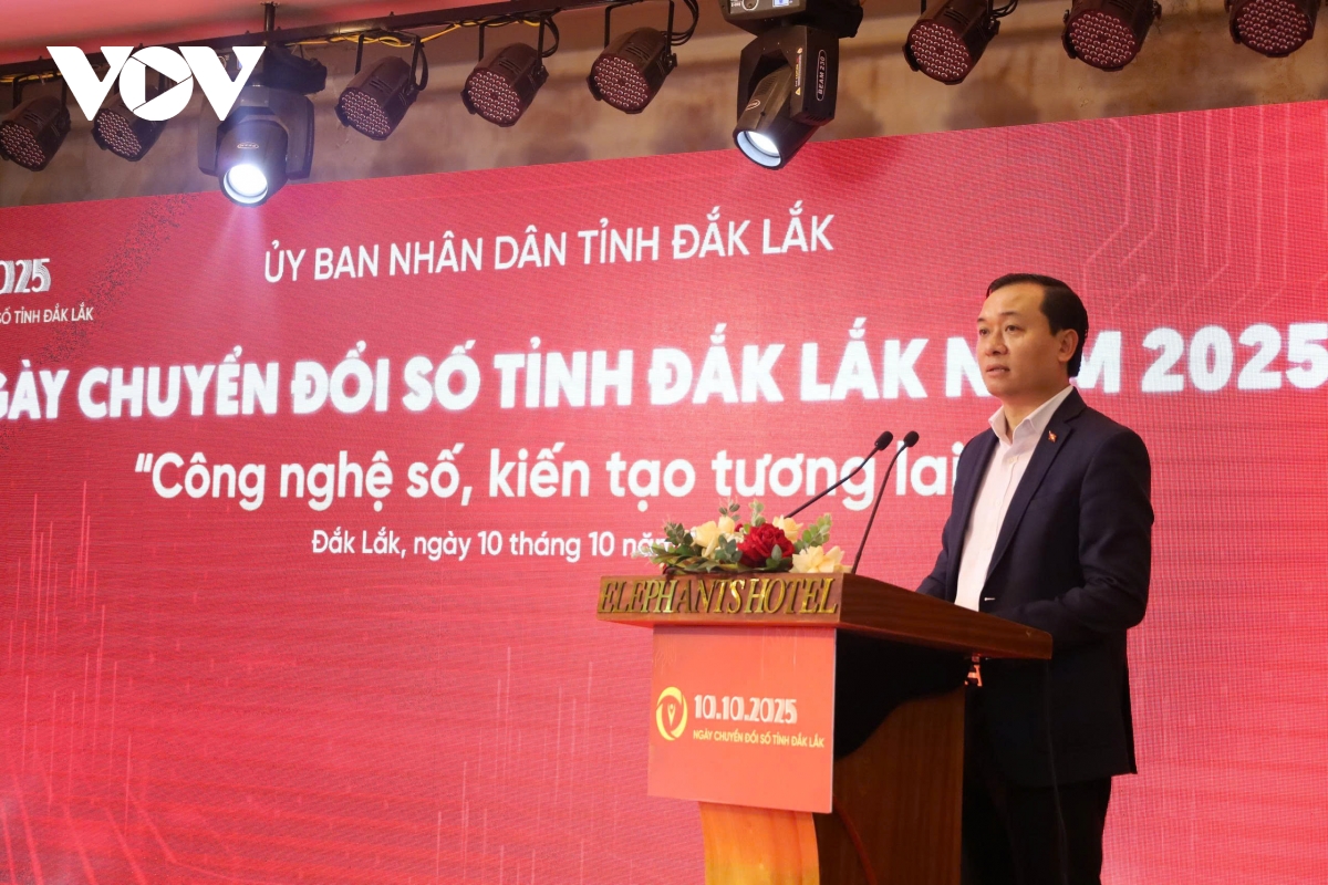 VOV.VN - Hưởng ứng Ngày Chuyển đổi số Quốc gia 10/10, sáng nay, 10/10, UBND tỉnh Đắk Lắk tổ chức Ngày hội Chuyển đổi số năm 2025 với chủ đề “Công nghệ số – Kiến tạo tương lai.”