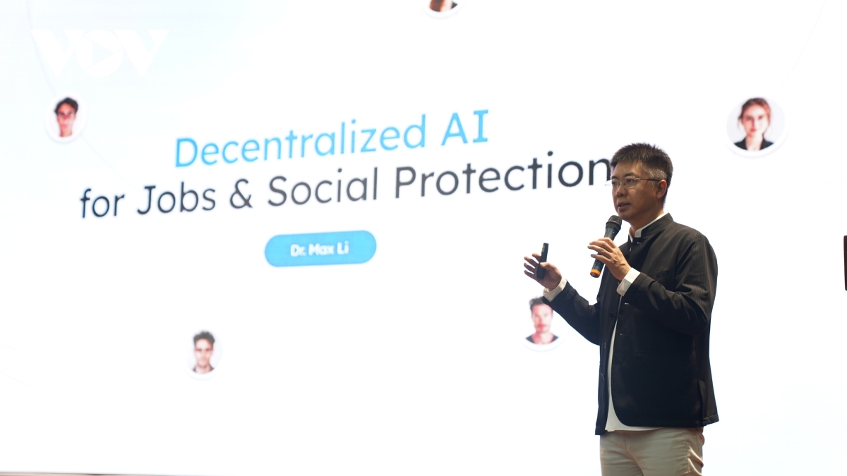 Giáo sư Max Li phân tích 3 trụ cột của AI gồm dữ liệu, sức mạnh tính toán và mô hình… hiện phần lớn do các tập đoàn lớn nắm giữ, nhưng dữ liệu vẫn là lợi thế mà các địa phương có thể chủ động. Ông Li nêu rõ đặc trưng của AI phi tập trung: dữ liệu do cộng đồng đóng góp, xử lý cục bộ và vận hành minh bạch trên blockchain. Từ kinh nghiệm triển khai OORT DataHub (nền tảng thu thập và xử lý dữ liệu phi tập trung) tại hơn 100 quốc gia, ông Max Li cho biết, mô hình này đã hỗ trợ tạo việc làm và tăng thu nhập cho người dân, nhất là thanh niên thất nghiệp ở Bắc Phi và Trung Đông.