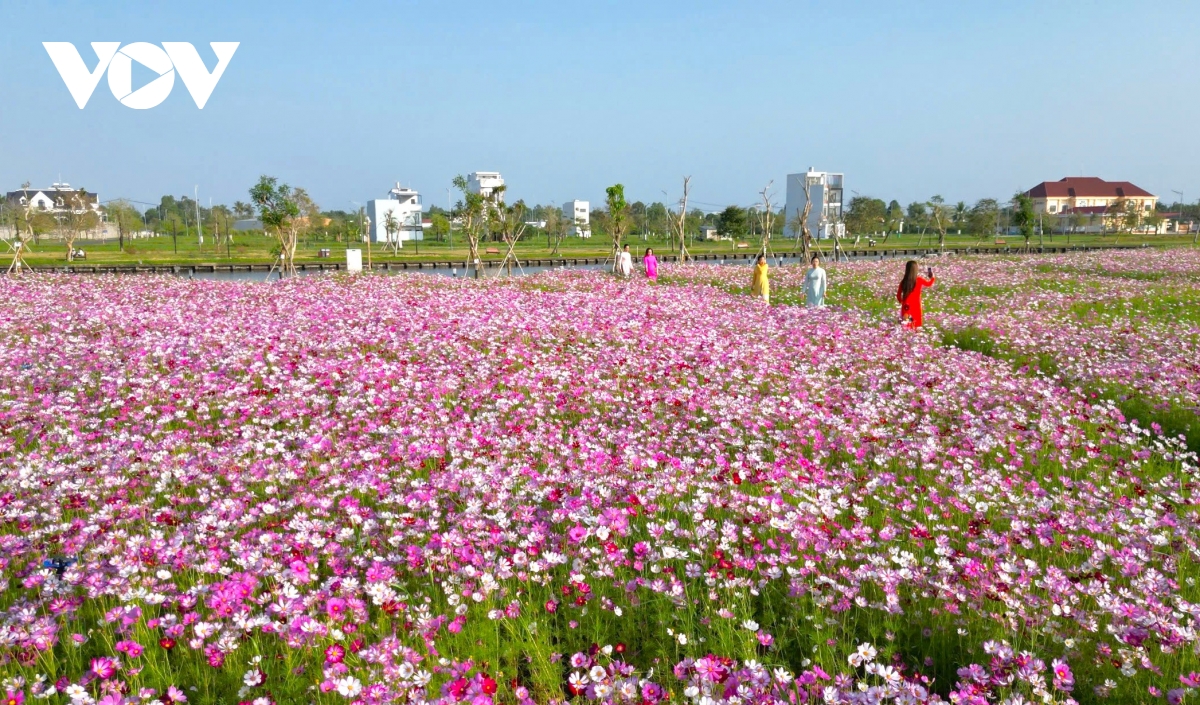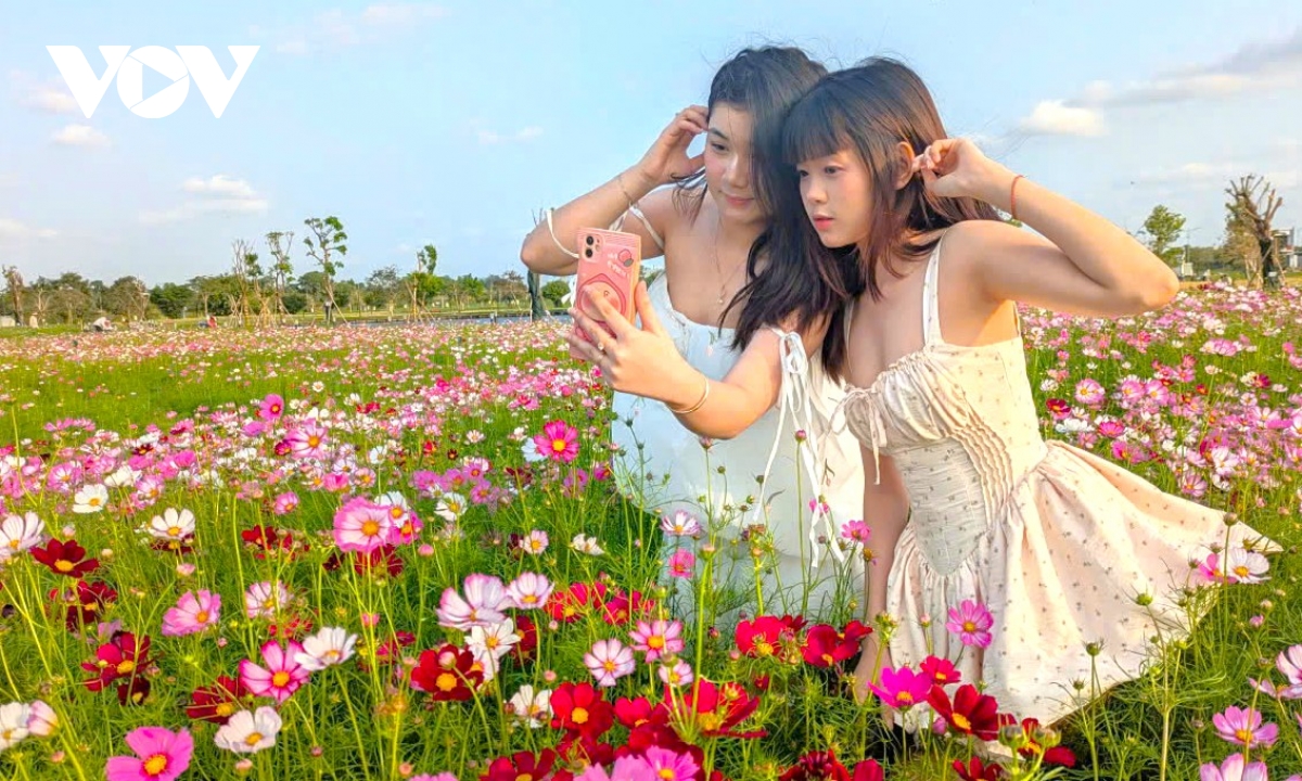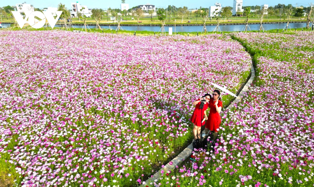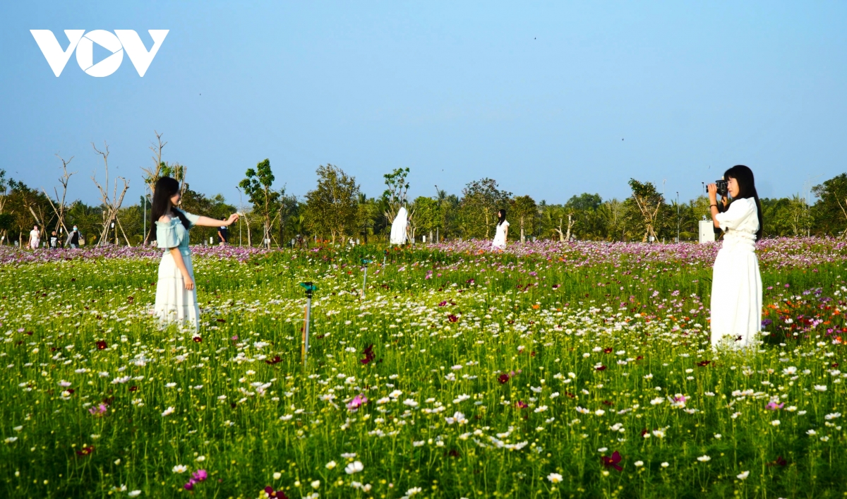 VOV.VN - Giữa lòng đô thị cực Nam Tổ quốc - Cà Mau, một không gian rực rỡ sắc hoa rộng hơn 2,5ha, thu hút rất đông du khách đến check-in dịp cận Tết.