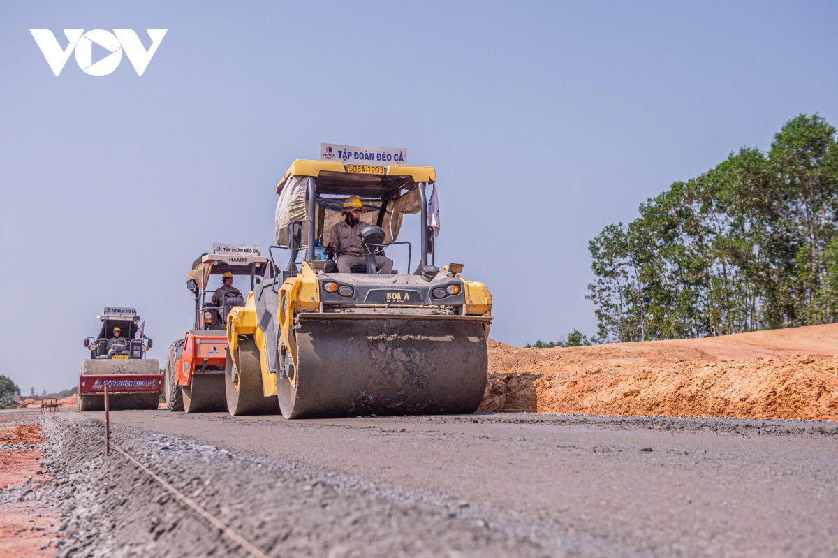 Nhân lực, máy móc của Tập đoàn Đèo Cả thi công dự án cao tốc Bắc - Nam.