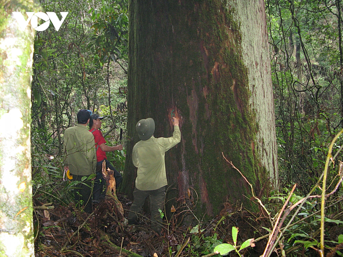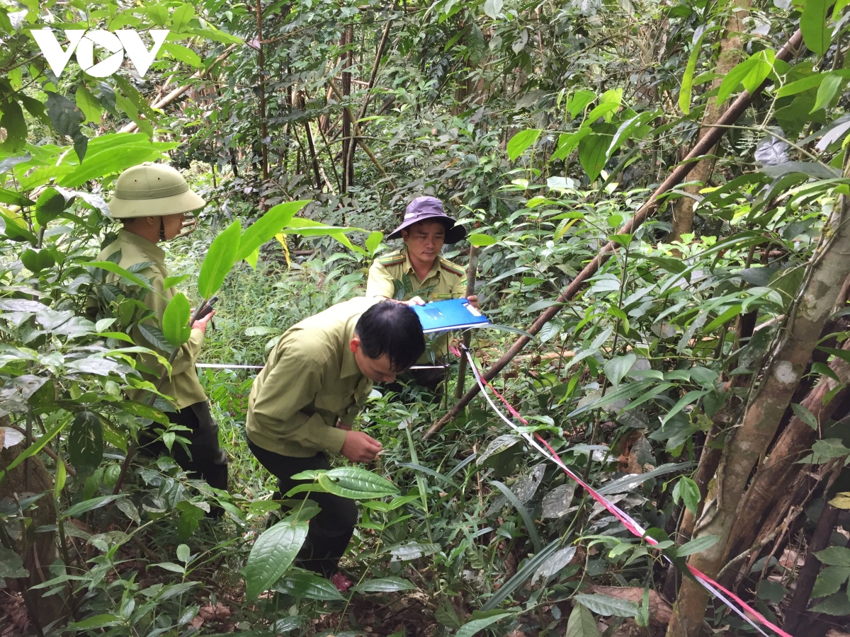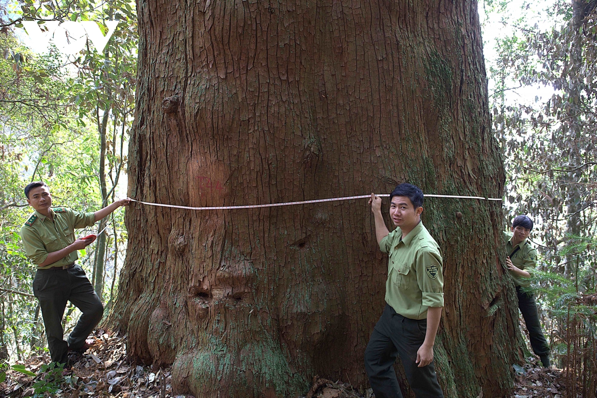Cán bộ bảo vệ rừng đang làm nhiệm vụ. Các cây di sản tại khu bảo tồn thiên nhiên Pù Hoạt được bảo vệ nghiêm ngặt, tránh bị xâm hại.