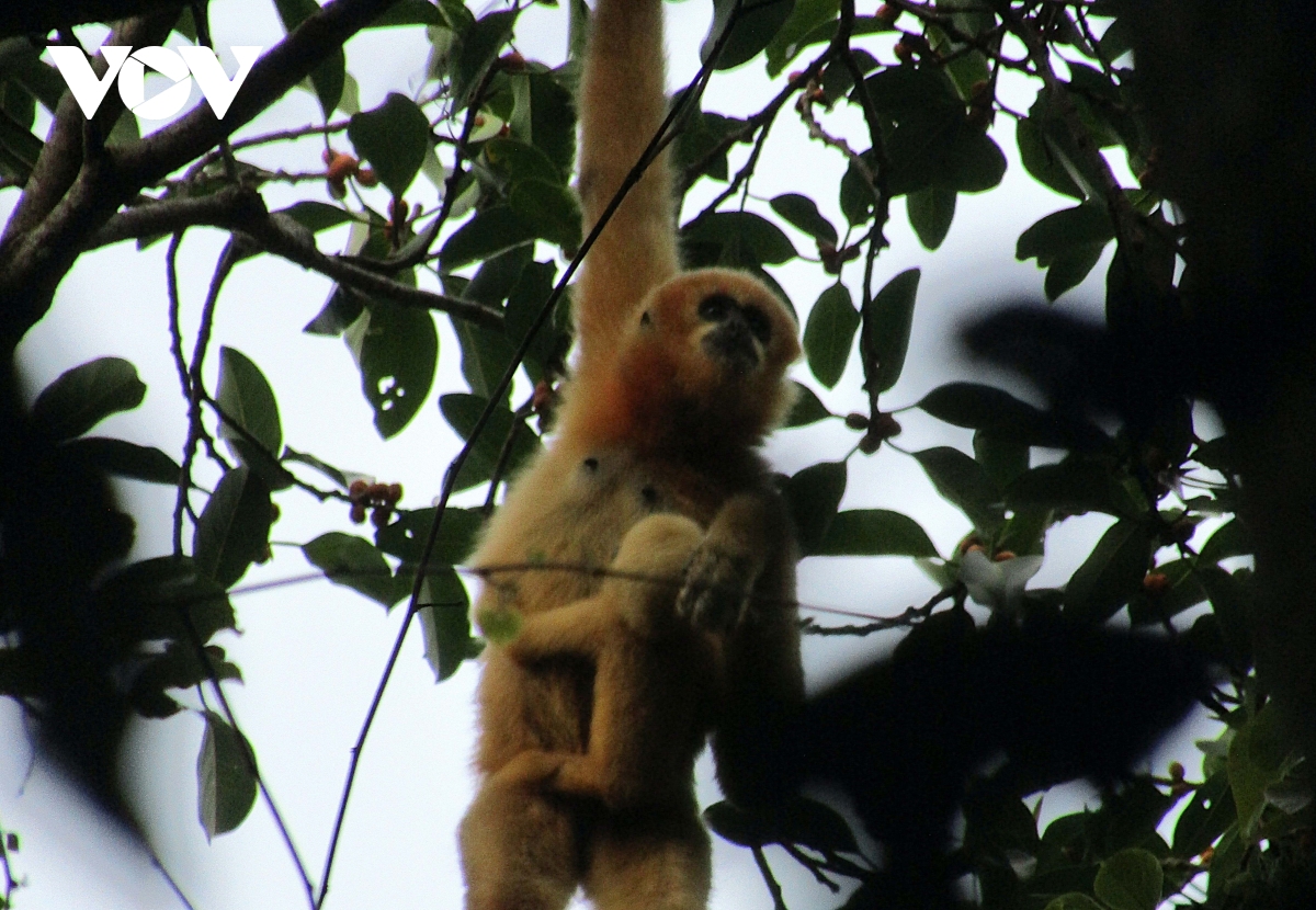 Vượn đen má trắng (con cái - có màu nâu đỏ). Loài vật này cực kỳ nguy cấp đặc hữu của Đông Nam Á. Vượn đen má trắng là loài dị hình giới tính, tức là con đực và con cái có màu sắc khác nhau và con đực cũng lớn hơn một chút…