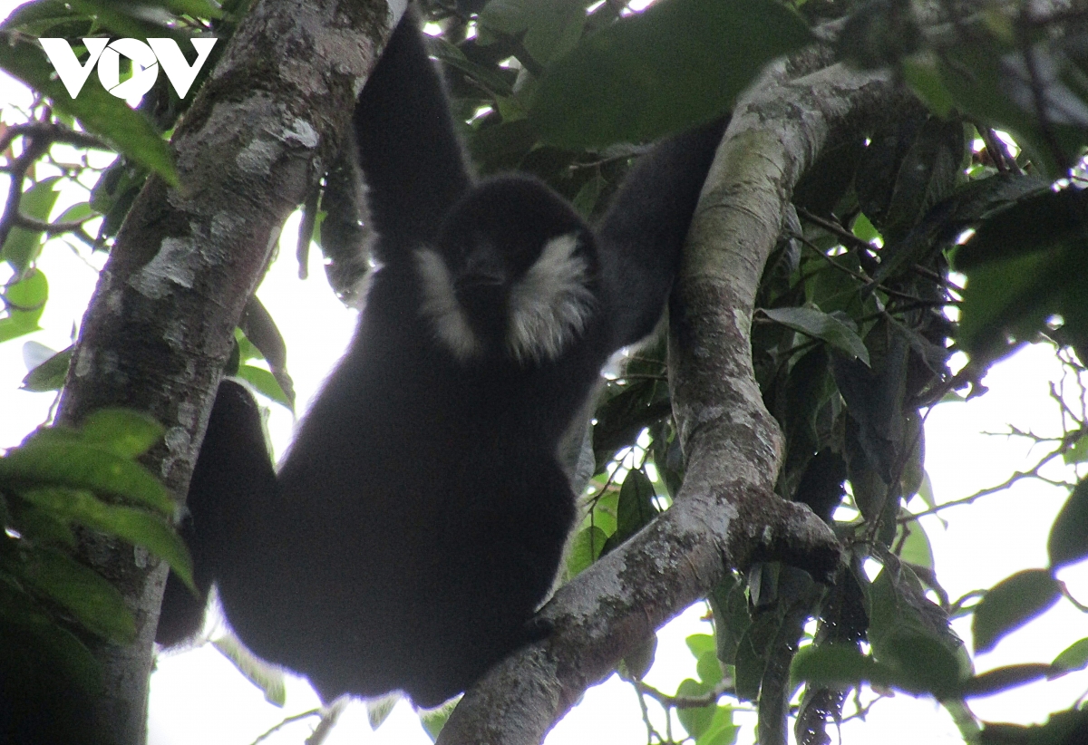 Vượn đen má trắng (con đực - có màu có lông đen trên toàn bộ cơ thể). Chúng là loài có thói quen sống trên cây và chủ yếu ăn thực vật, với thức ăn chính là quả, một số loại lá…