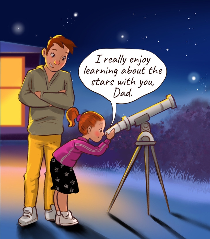 Ngược lại, nếu chúng ta chia sẻ những khoảnh khắc mà chúng ta cảm thấy thú vị, hay nơi trẻ có thể thấy chúng ta hạnh phúc và mãn nguyện khi làm những gì chúng ta thích, chúng sẽ học theo cha mẹ để tận hưởng tài năng của mình.