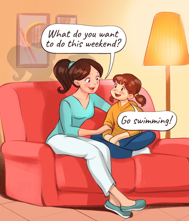 Các bậc cha mẹ đều tưởng tượng rằng con mình sẽ trở thành chuyên gia trong một hoạt động nào đó mà chính chúng ta đam mê. Nhưng thực tế, trẻ có thể không chia sẻ mọi sở thích của mình. Vì thế, hãy xem điều gì thu hút sự chú ý của trẻ, điều gì khiến chúng mỉm cười. Bằng cách để chúng tự khám phá, bạn sẽ dễ dàng quyết định những gì trẻ thích nhất và điều đó sẽ giúp mối quan hệ giữa cha mẹ và con cái tốt hơn, thể hiện sự quan tâm đến những gì trẻ thích.