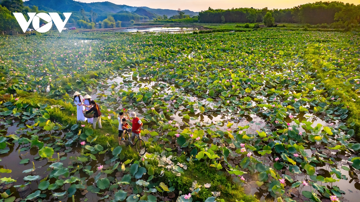 Cánh đồng sen trong sớm bình minh và bát ngát hương thơm ngào ngạt sẽ là món quà tuyệt vời cho du khách đam mê khám phá.