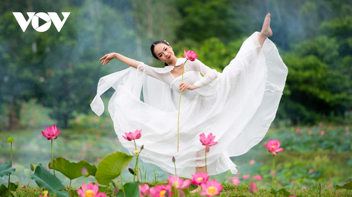 Mùa sen rực rỡ cũng là thời điểm thu hút các bạn trẻ đến đây ghi lại những khoảnh khắc đẹp bên cánh đồng sen.