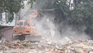 Đê La Thành đang giải tỏa. Những ngôi nhà lô nhô mặt phố, bám sát nhau, nay các bức tường vỡ lộ ra từng mảng gạch, bê tông cốt thép tua tủa.
