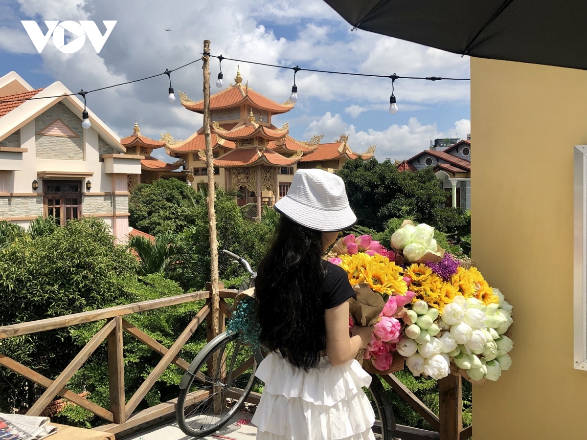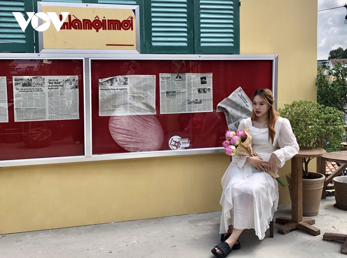 Đến quán cà phê, Hương cảm nhận được nét đặc sắc riêng qua hình ảnh các sạp báo, xe hoa… được tái hiện rất giống với khung cảnh mùa thu Hà Nội. Để đảm bảo tính chân thật, ánh sáng đẹp khi lên hình, các góc trang trí mùa thu Hà Nội thường được quán bài trí ngoài trời, giúp các bạn trẻ thỏa sức “sống ảo” dù thời tiết Sài Gòn luôn nóng bức.