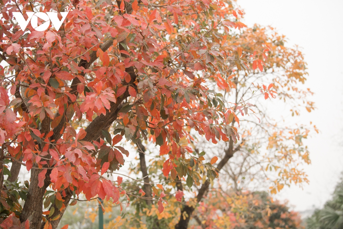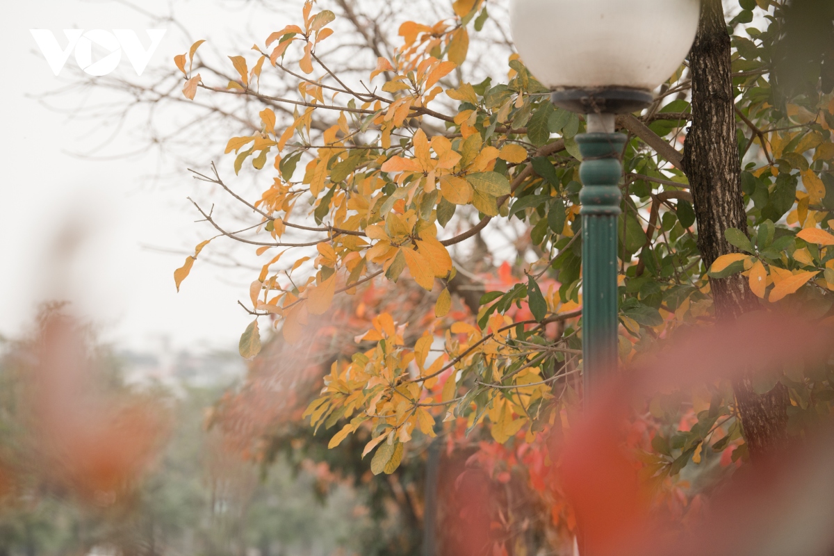 Không khó để bắt gặp hình ảnh những tán lá xen lẫn sắc vàng, đỏ trên khắp phố phường Hà Nội những ngày này