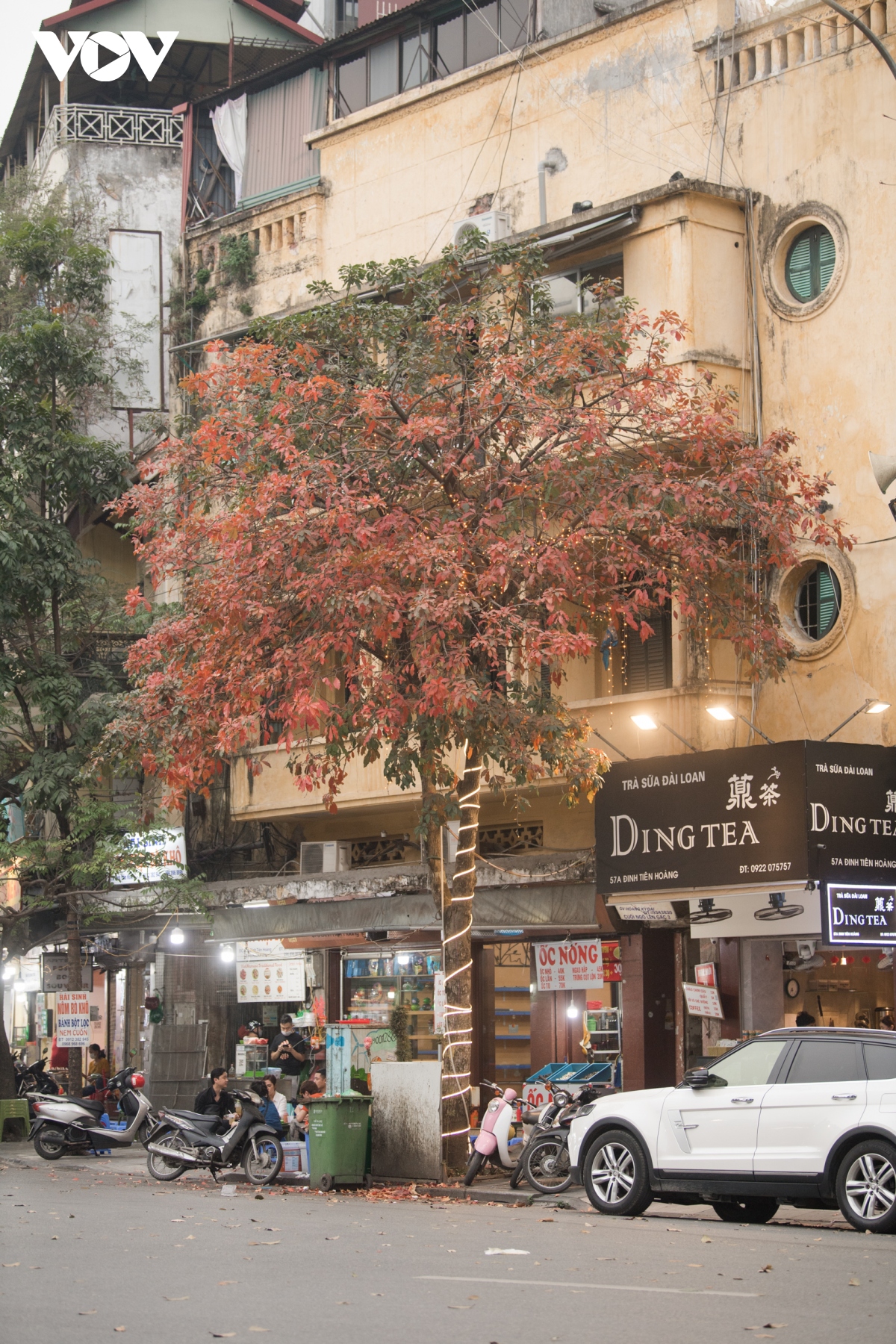 Góc phố yên bình trong sắc vàng, đỏ của cây lá.